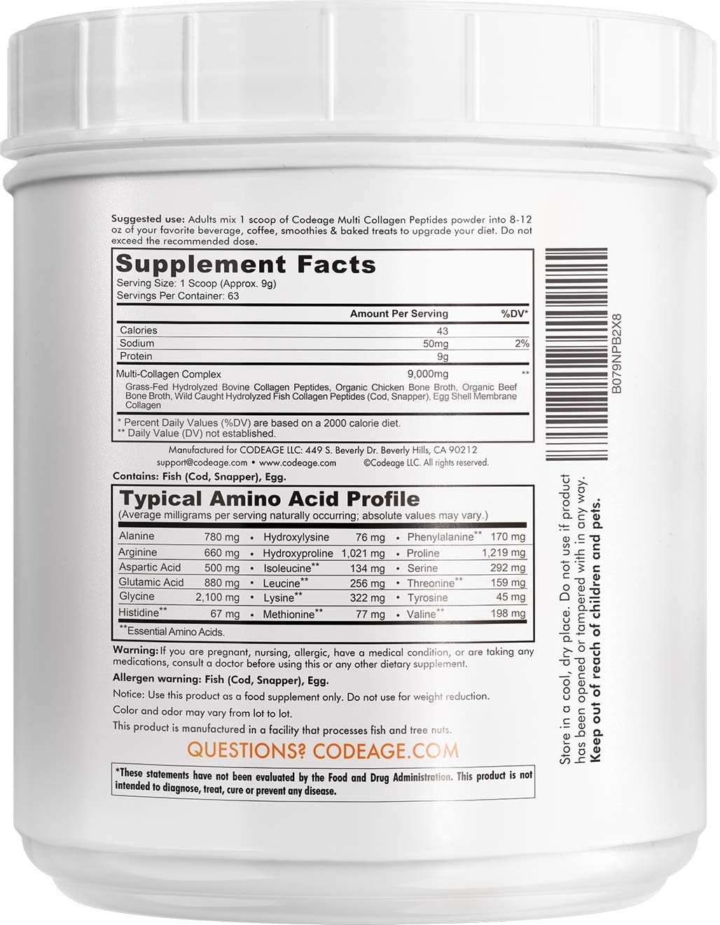 DESCRIPTION : Codeage Multi Collagen Protein Capsules & Multi Collagen Protein Powder Bundle | Multi Collagen Pills, Collagen Types I, II, II, V & X, 90 Count | Multi Collagen Peptides - Pure, Hydrolyzed, 20 oz