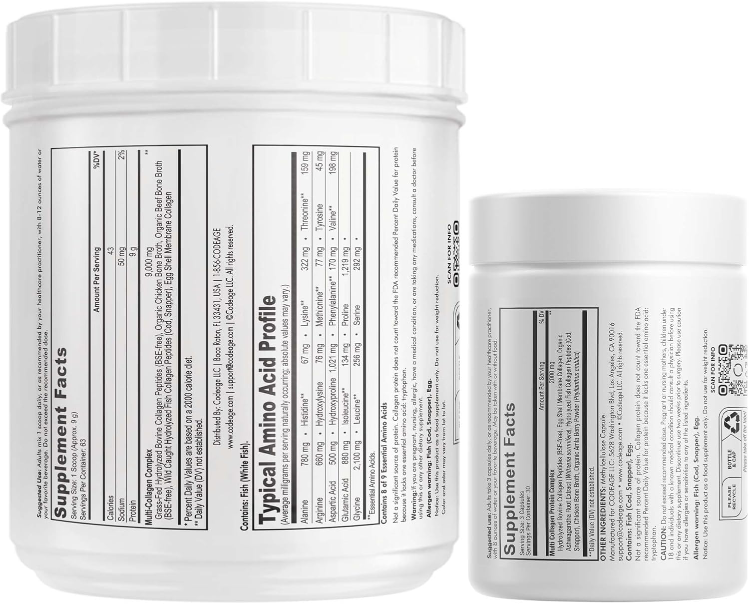 Codeage Multi Collagen Protein Capsules & Multi Collagen Protein Powder Bundle | Multi Collagen Pills, Collagen Types I, Ii, Ii, V & X, 90 Count | Multi Collagen Peptides - Pure, Hydrolyzed, 20 Oz