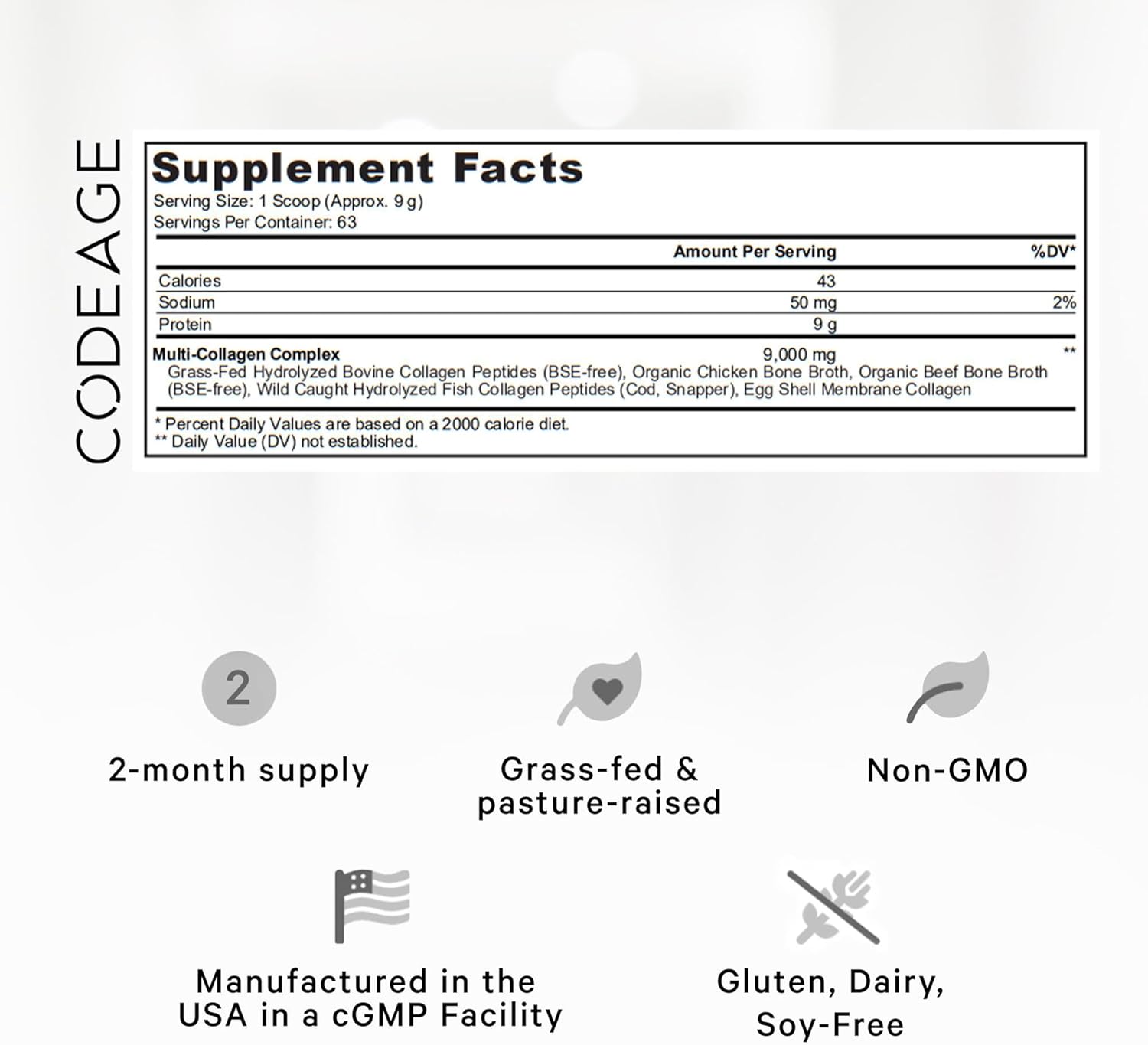 2 Months Supply: Each Jar Of Codeage Multi Collagen Peptides Powder Supplement Offers 63 Servings For More Than A 2 Months Supply. This Large Pack Format Provides A High-Quality Collagen Supplements At A Great Value. This Hydrolyzed Collagen Powder Contains Types 1, 2, 3, 5 & 10 Of Collagen For Women And Men. Codeage Powder Collagen Can Be Taken At Any Time Of The Day