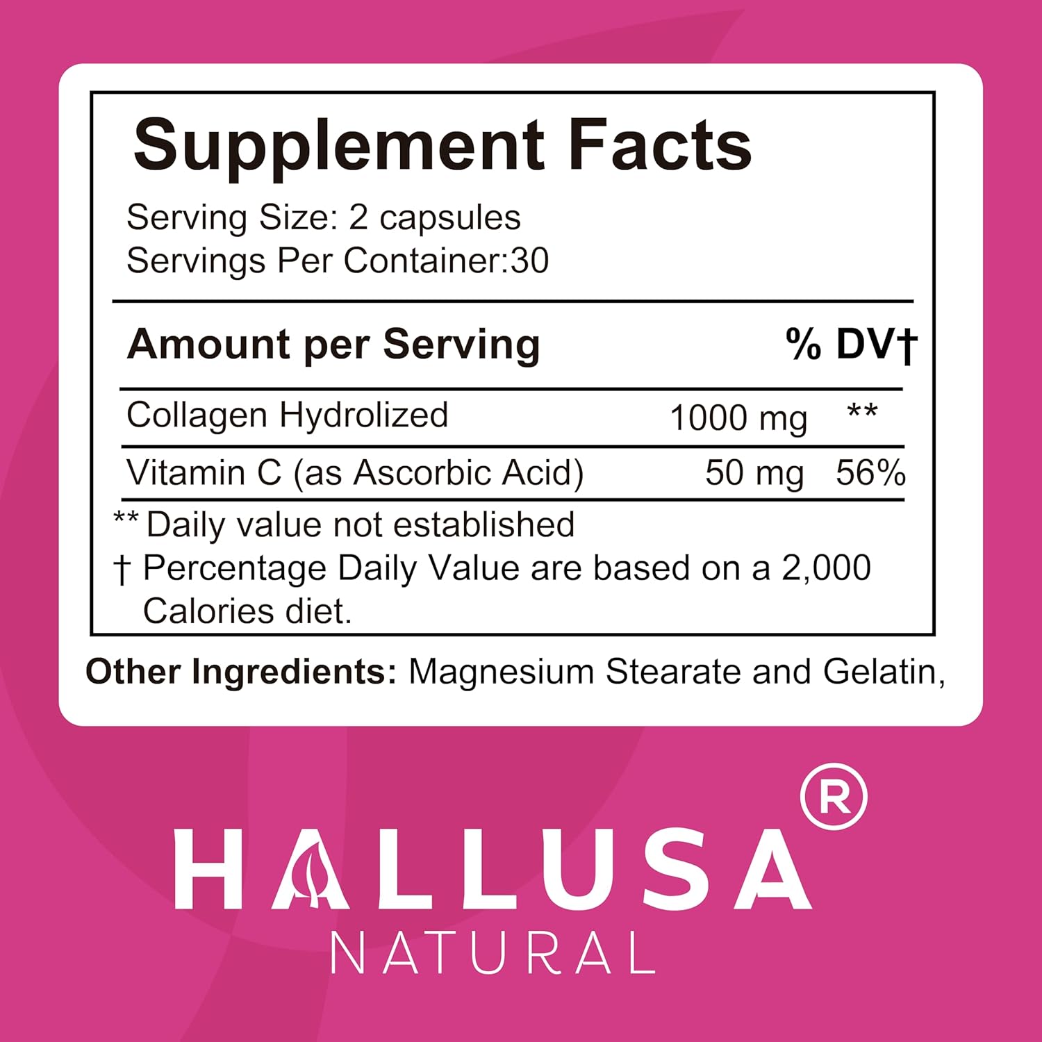 Advanced Formula: Each capsule contains 1000mg of hydrolyzed collagen peptides and 50mg of Vitamin C. Collagen vitamins for women promoting collagen production and overall well-being