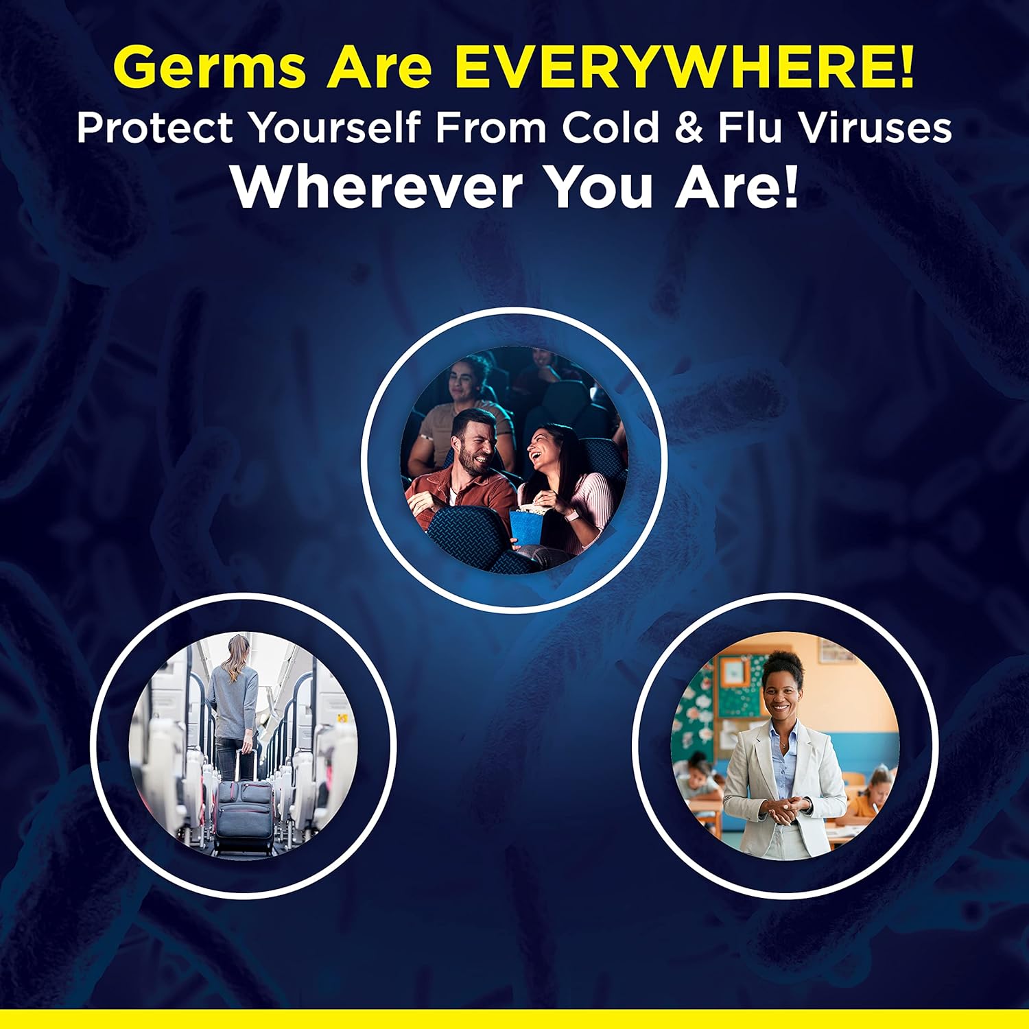 Immediate protection against cold & flu causing particles