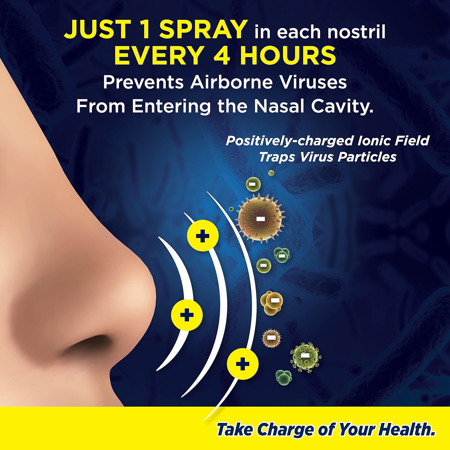 Breakthrough Technology: Our unique technology creates an ionic field from the positively-charged nasal spray inside the nasal canal. The spray adheres to the nasal mucosa where it attracts and traps the negatively-charged airborne particles