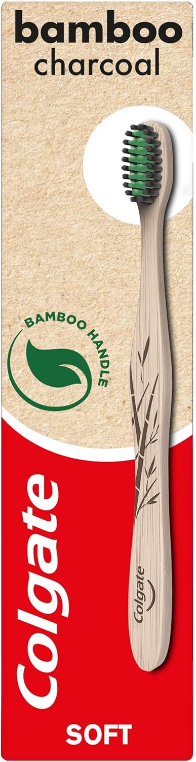 The Colgate Bamboo Charcoal toothbrush features tapered slim-tip bristles which deliver deep yet gentle cleaning, so there's no compromise on efficacy of the brush. Note that bristle colour may vary from those pictured. Bamboo that's sustainably sourced With many people doing their bit to help the planet, the Colgate Bamboo Toothbrush is a great alternative to plastic as it's made with sustainably grown bamboo that's 100% biodegradable*. Soft, tapered bristles The slim-tip bristles are great for getting to those hard-to-reach places, plus they're soft for gentle yet effective cleaning of teeth and gums. Bristles infused with charcoal We've infused our black-bristles with Binchotan charcoal. Natural beeswax waterproofing Don't worry about your Colgate Bamboo Toothbrush going mouldy - we've waterproofed it with beeswax to minimise the absorption of water and increase durability of the brush. Plastic-free packaging When it comes to the packaging, we've used recyclable cardboard instead of plastic. This means the packaging is totally recyclable. This is part of Colgate's long-term commitment to reducing plastic waste. Practical and attractive non-slip handle The clever bamboo etching creates a thumb grip to make your Colgate Bamboo Toothbrush easy to hold - and will look stylish in any bathroom. *Remove bristles. Compostable in municipal compost facilities, where available