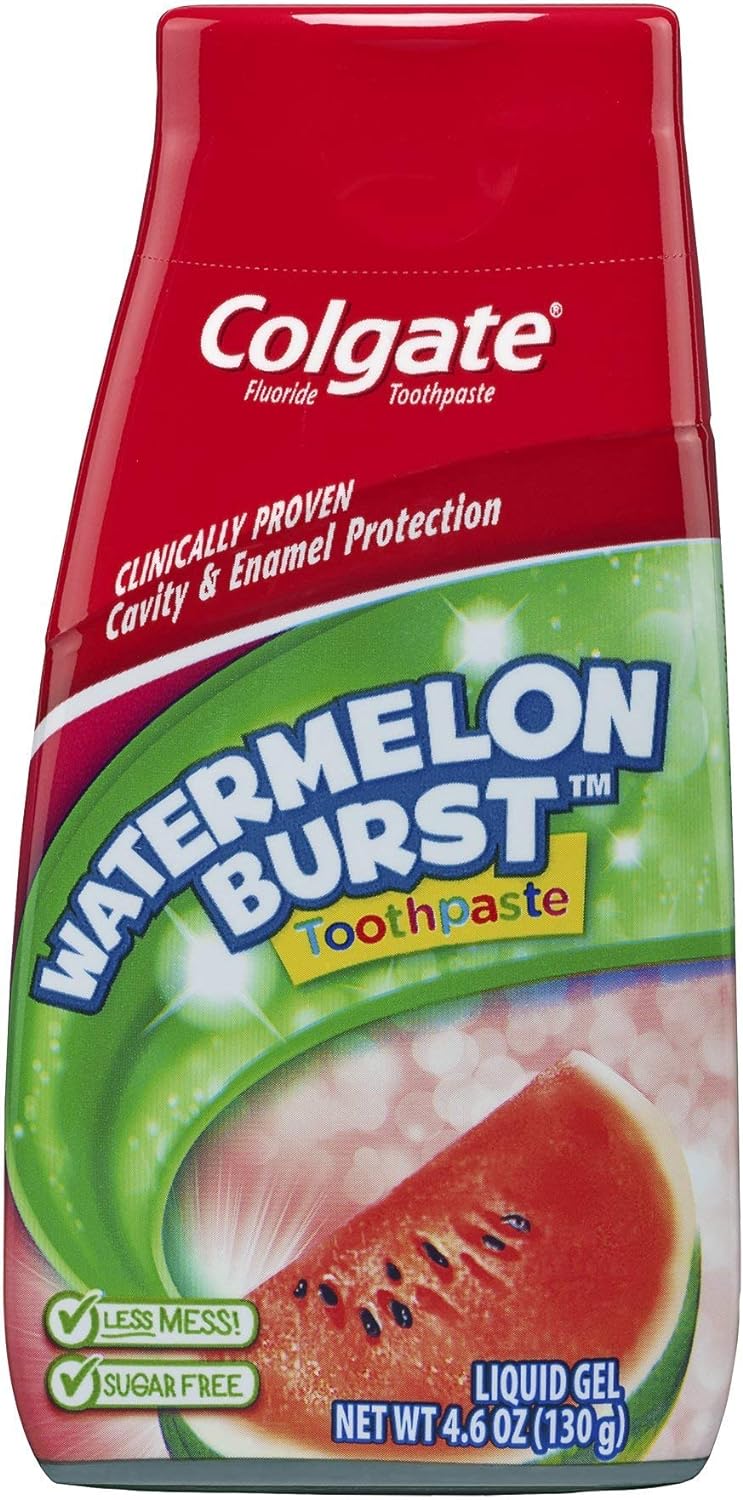Colgate Kids Watermelon Toothpaste combines cavity protection and flavor into one gel toothpaste formula. This kids toothpaste with fluoride provides clinically proven cavity and enamel protection and freshens breath with a Watermelon Burst flavor. This bright and colorful package combined with a fun, watermelon flavor will help encourage your kids to brush for a lifetime of bright smilesClinically proven cavity and enamel protectionEasy to dispense gel toothpasteFun watermelon flavor to encourage regular brushingBright and coloful package that your kids will like
