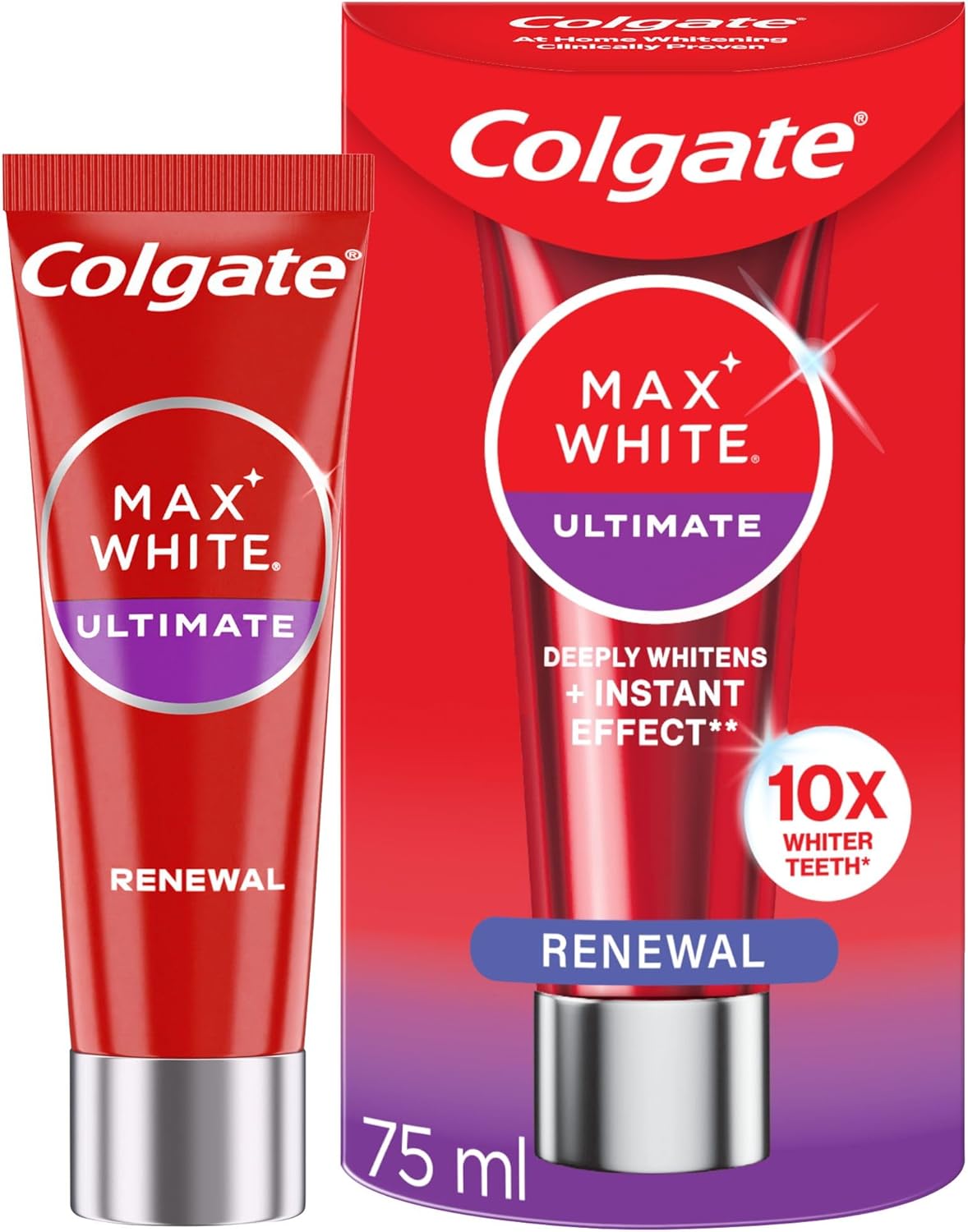 Colgate Max White Ultimate Renewal Whitening Toothpaste 75Ml - 10X Whiter Teeth* - Instant Teeth Whitening Toothpaste^ - Deeply* Whitens - Helps Prevent Future Stains - Enamel Safe For Daily Use