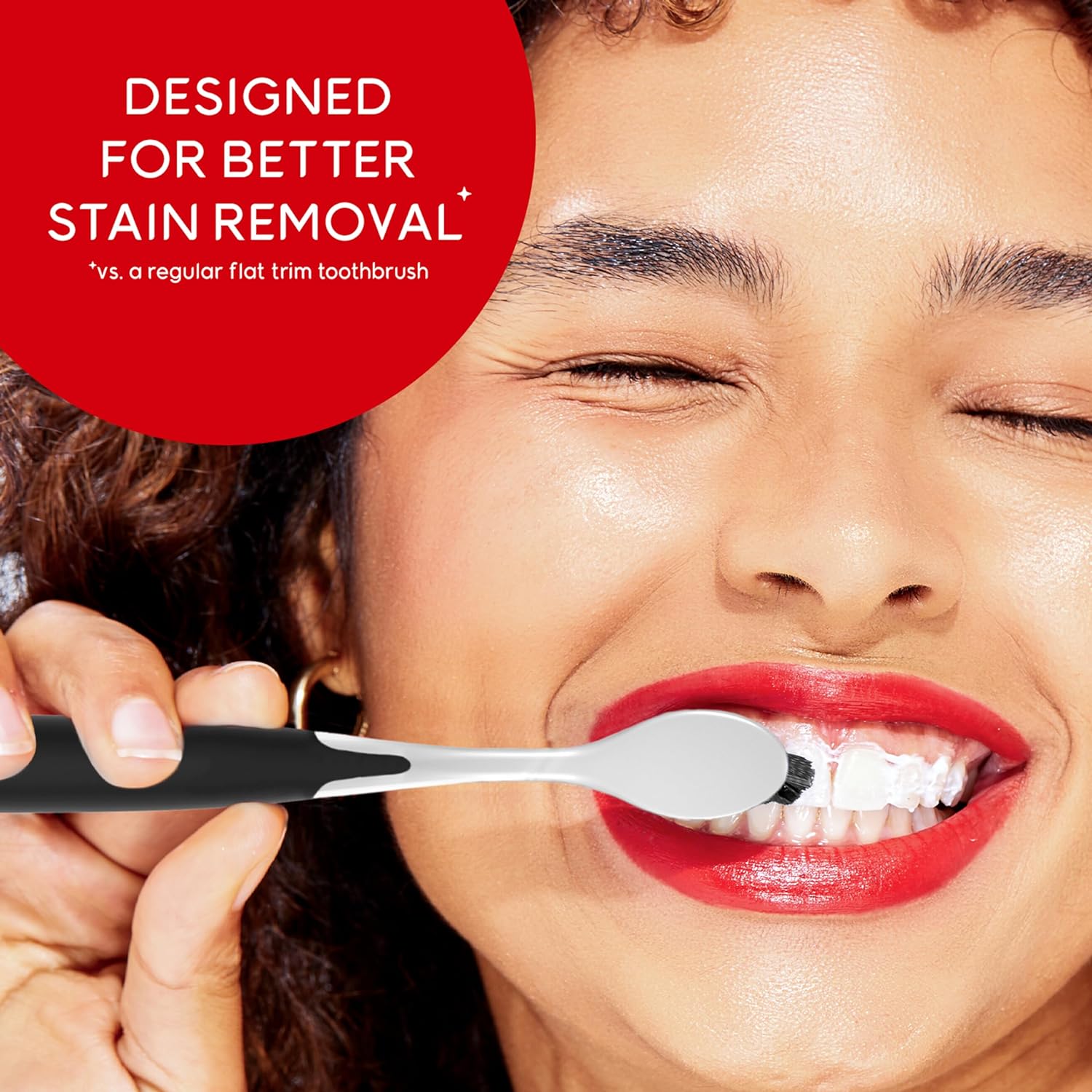 The Colgate Optic White Pro Series Toothbrush Pack is designed for better stain removal* and to help keep teeth clean. This 2 pack contains toothbrushes made with soft, charcoal spiral bristles. Help brighten your smile with the Colgate Optic White Pro Series Toothbrush Pack. Thinking about switching to a different kind of soft toothbrush Go for the Colgate Optic White Pro Series Soft Bristle Toothbrush. The multi-height bristle design offers better stain removal* between teeth and along the gum line. Plus, the soft bristles provide a gentle clean and you can use these soft toothbrushes with Optic White toothpaste to remove years of stains**. At Colgate, we make products that promote healthy smiles. Not only because having a healthy smile is important to your overall health, but because when you have a healthy smile, you actually smile more – and that’s a powerful thing. Smiles are the simplest form of optimism, something we need now more than ever. That’s why we’re championing optimism – we are committed to creating a healthier planet and working every day to create healthy smiles for all. Everyone has the right to a bright smile. That’s why we’re committed to raising oral healthcare standards everywhere. Whether it’s building healthy new habits as kids or learning something new from the experts, we’re here for you. *vs. a regular flat trim toothbrush **with hydrogen peroxide, when brushing twice daily for 4 weeksIncludes two (2) Colgate Optic White Pro Series Toothbrushes, Soft Bristle Toothbrush PackEach Optic White toothbrush features a unique design with distinctive charcoal spiral bristlesUse these soft toothbrushes with Optic White toothpaste to remove years of stains** (**with hydrogen peroxide, when brushing twice daily for 4 weeks)A multi-height soft bristle toothbrush design offers better stain removal* between teeth and along the gum line (*vs. a regular flat trim toothbrush)