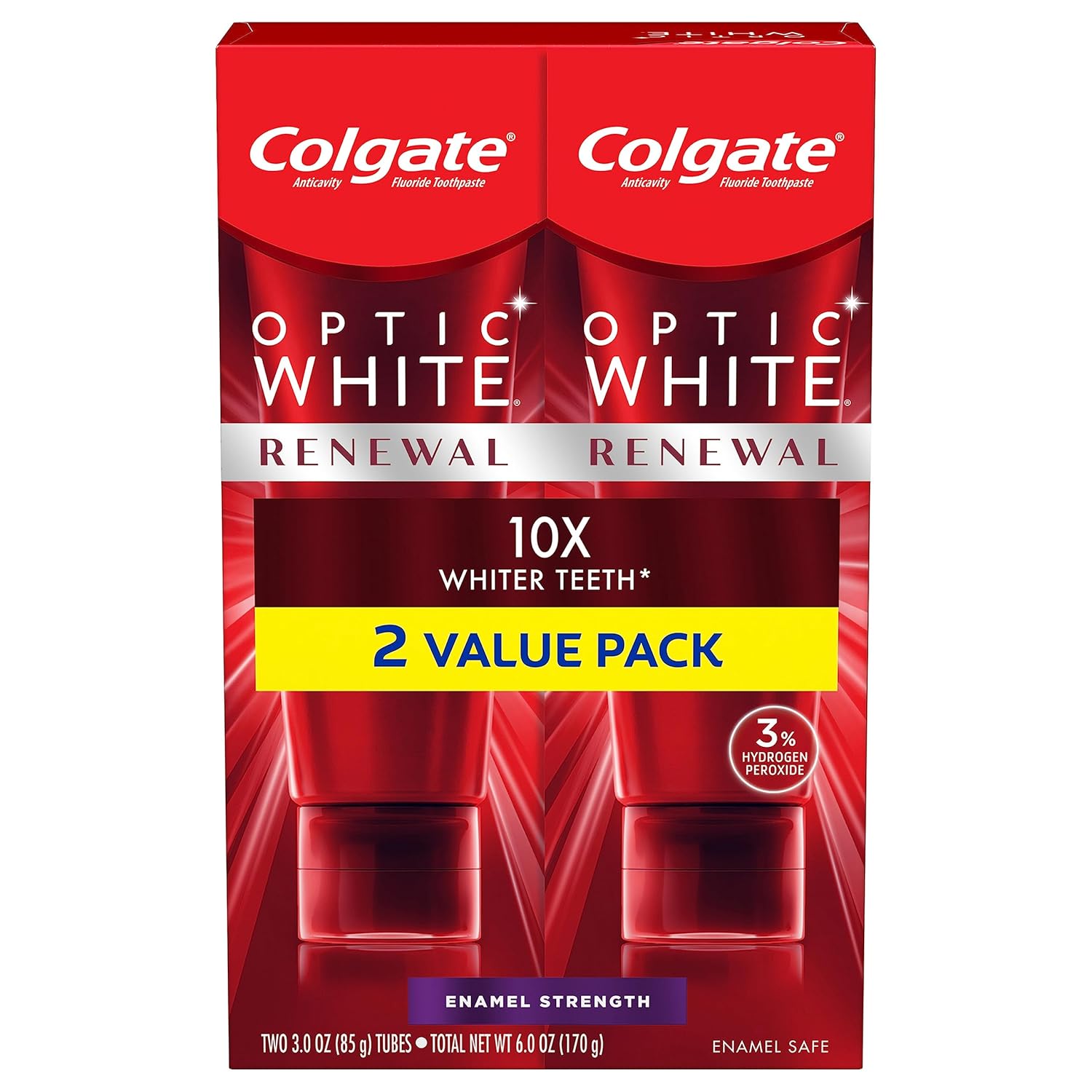 Colgate Optic White Renewal Teeth Whitening Toothpaste, Enamel Strength, 3 Oz Tube, 2 Pack