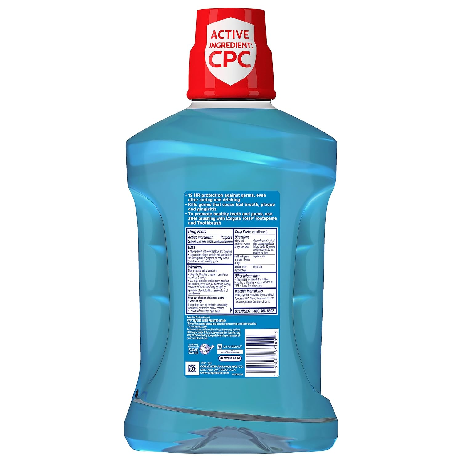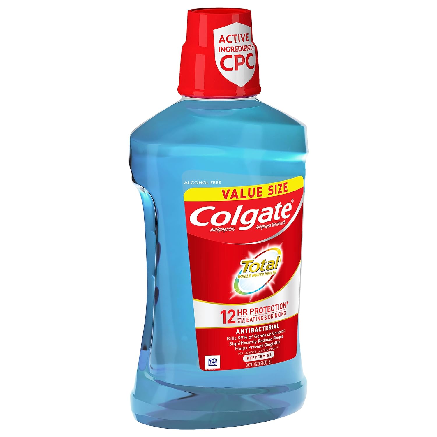 Colgate Total 12HR Pro-Shield Mouthwash doesn't just freshen breath, it provides 12-hour protection against germs, even after eating and drinking, helping to keep your mouth healthy and fresh. It kills 99% of germs on contact, significantly reduces plaque and helps prevent the gum disease gingivitis. Colgate Total 12HR Pro-Shield Mouthwash is an alcohol-free mouthwash (does not contain ethanol) and has a refreshing Peppermint Blast flavor12-hour protection against germs even after drinking and eatingKills 99% of germs on contactSignificantly reduces plaqueHelps prevent gingivitis