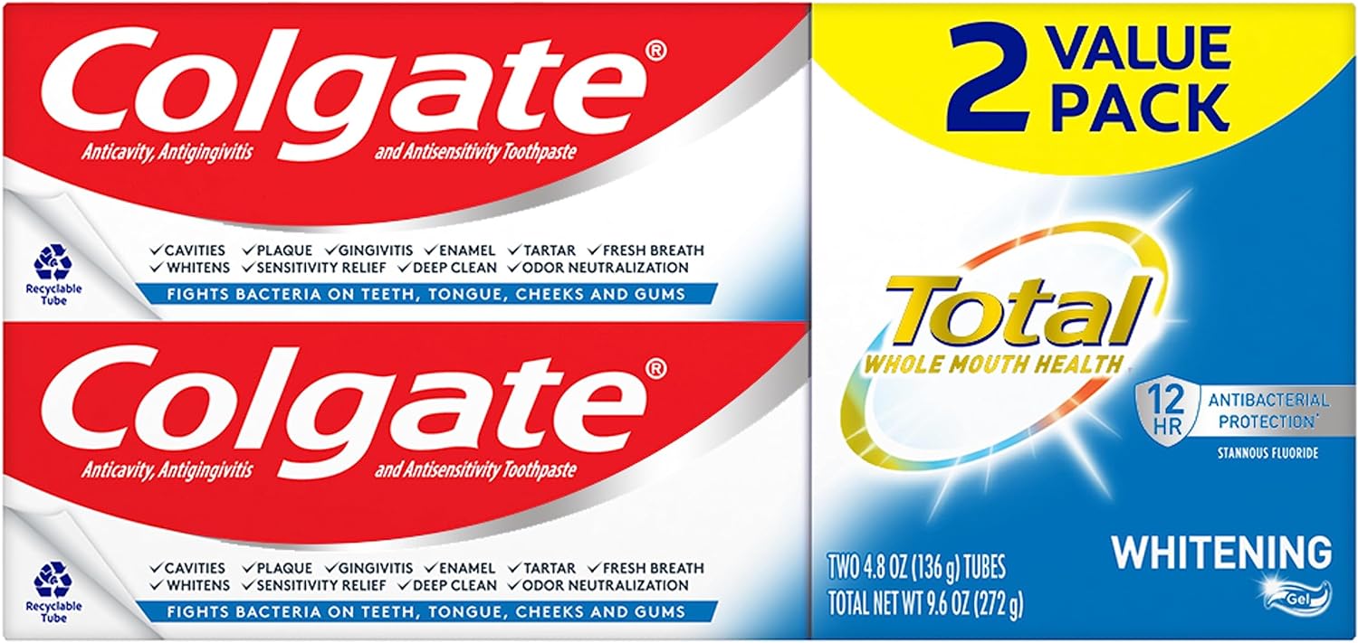Includes Two (2) 4.8 Oz Tubes Of Colgate Total Whitening Toothpaste Gel, Teeth Whitening Toothpaste