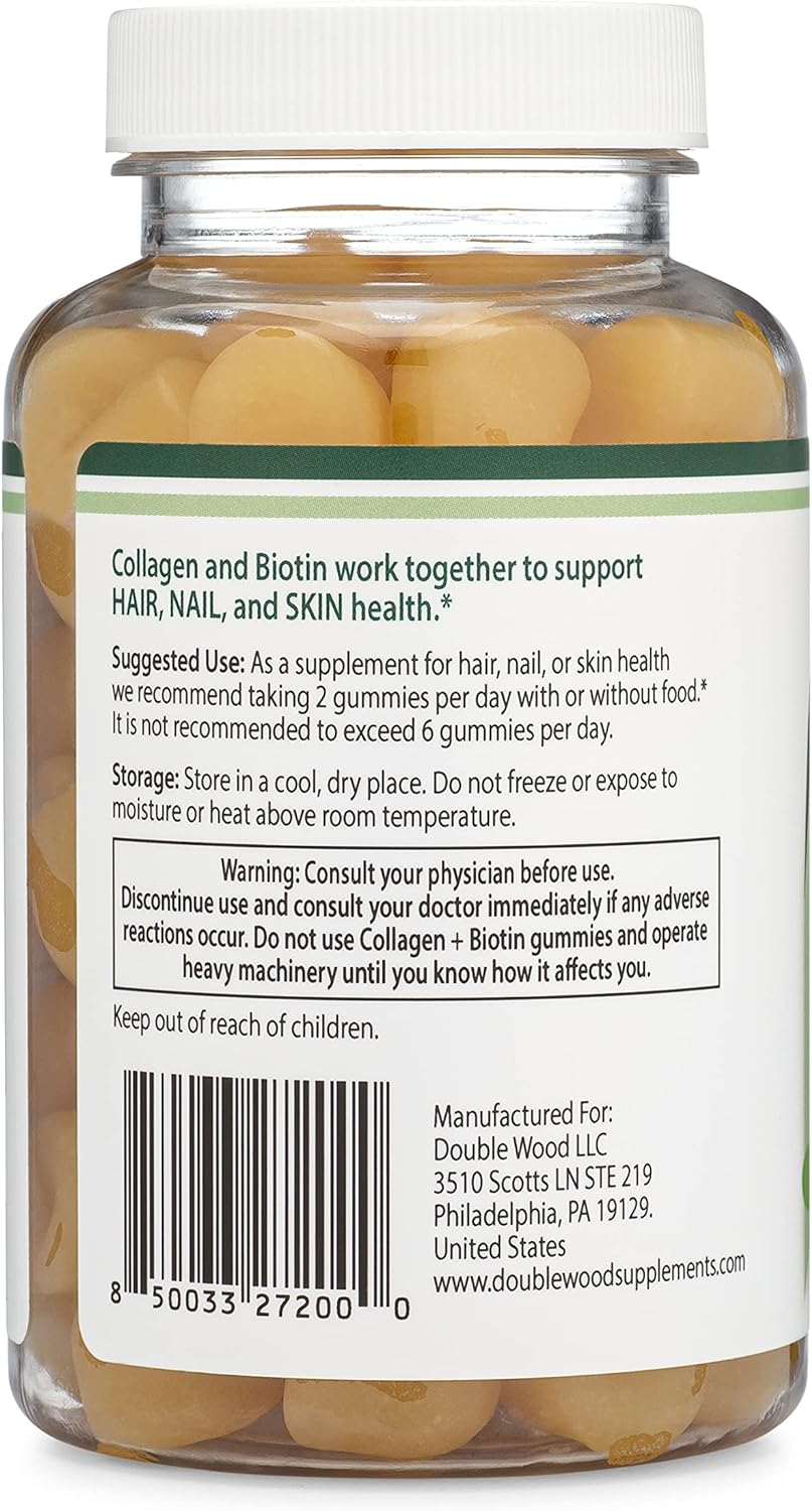 DESCRIPTION : Collagen Gummies for Women Supports Aging (Max Strength - Enhanced with Biotin, Vitamin C, Zinc, and Vitamin E (Longevity for Women and Men) 60 Hair, Skin, and Nails Vitamins (Non-GMO) by Double Wood