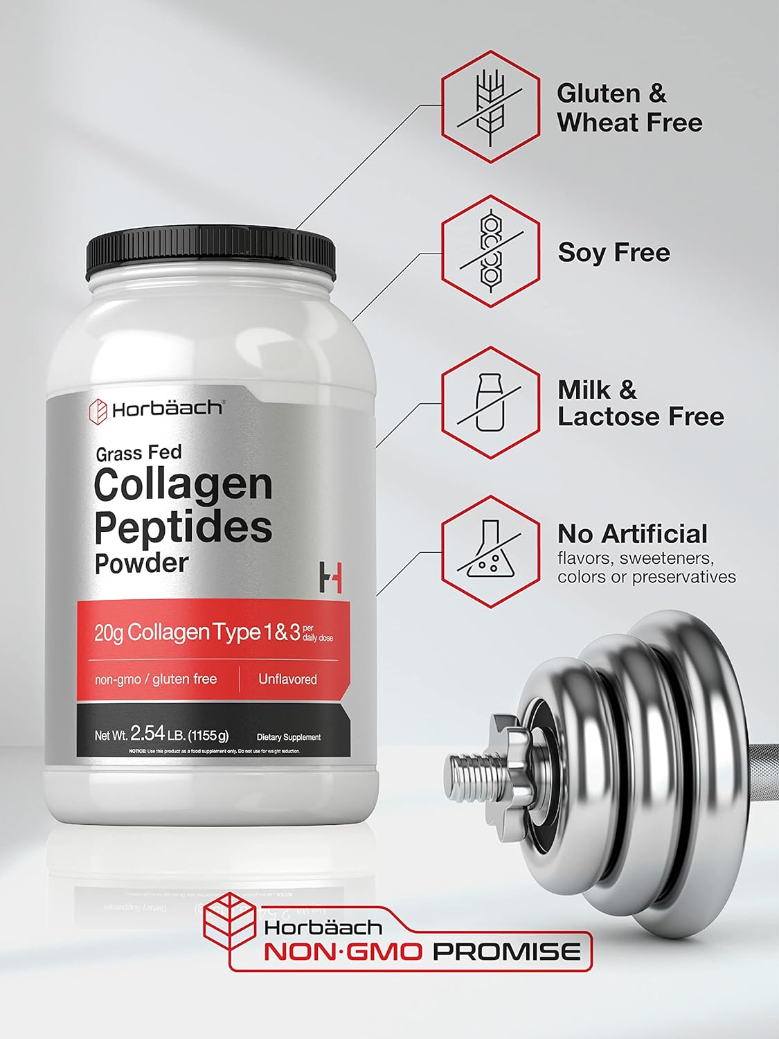 Collagen Peptides Powder 40 Oz | Unflavored | Type 1 And 3 | Hydrolyzed Protein Collagen | Keto And Paleo Supplement | Grass Fed, Non-Gmo, Gluten Free | By Horbaach