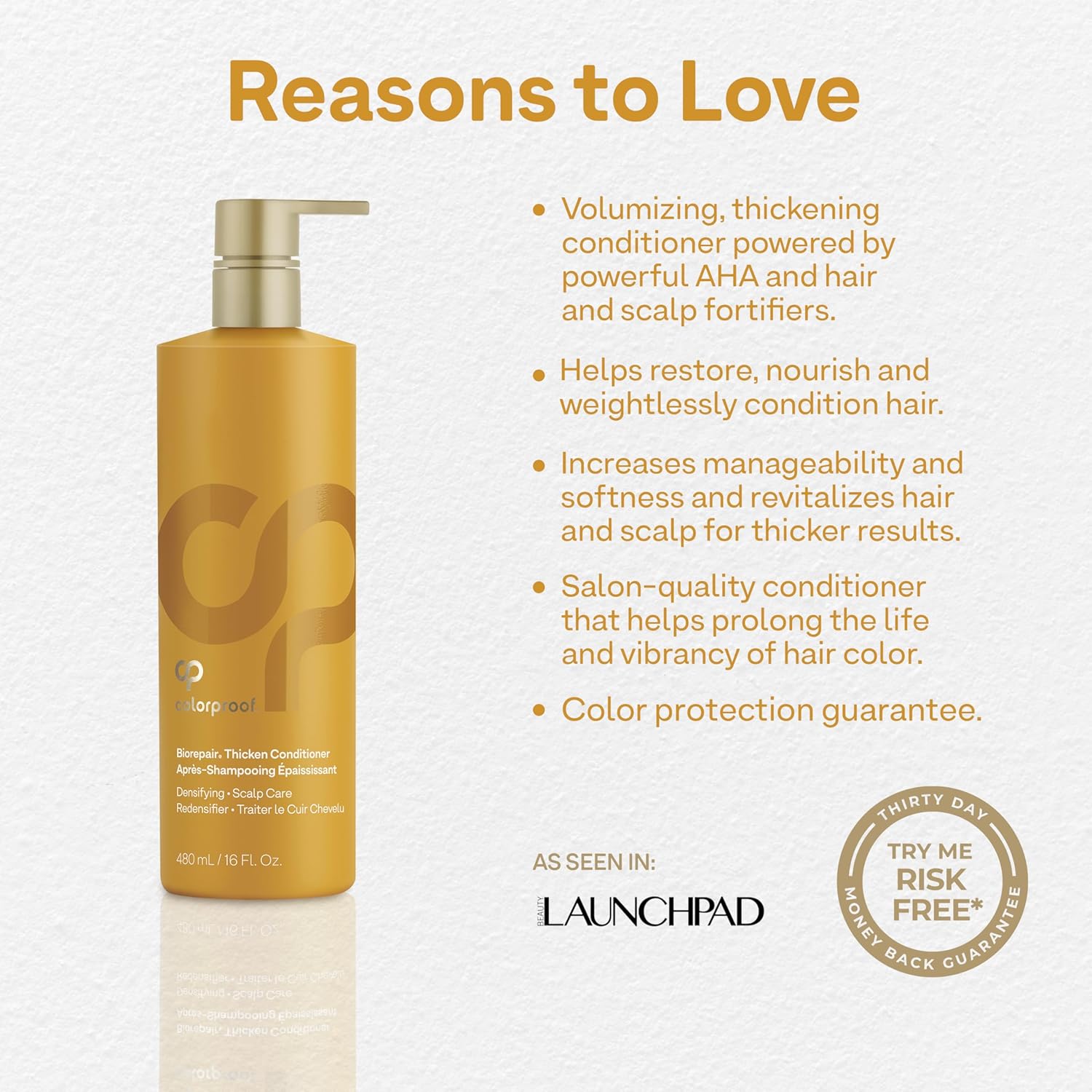 ColorProof Biorepair Thicken Conditioner for Thinning Color-Treated Hair, Nourishes & Stimulates Hair & Scalp, Thicker, Fuller Looking Hair, Sulfate-Free, Vegan