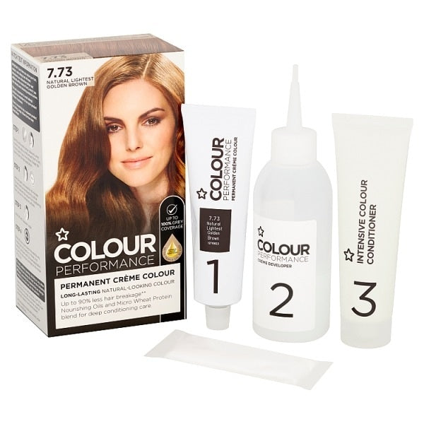 Product Information:Get Long-Lasting, Natural-Looking Colour In Three Simple Steps With Superdrug Colour Performance Permanent Crème Colour. The Easy To Apply, Non-Drip Formula Provides A Rich, Even And Visibly Glossy Colour Result With Up To 100% Grey Coverage. Specifically Formulated To Help Strengthen Colour Treated Hair, The Intensive Colour Conditioner With Triple Oil Blend* Leaves Freshly Coloured Hair Soft, Silky And Beautifully Shiny With Up To 90% Less Breakage,Features:· Maximum Colour Performance: Long-Lasting Grey Coverage With Visible Glossy Tones. · Professional Formula: Non-Drip, Easy To Apply Permanent, Natural-Looking Colour. · Deep Conditioning Care: New Intensive Colour Conditioner With Nourishing Oils, Wheat Protein And Niacinamide, Designed To Be Used Week After Week To Help Strengthen And Leave Freshly Coloured Hair Feeling Soft And Silky With Up To 90% Less Breakage**. · Salon Tested. Vegan. *Contains Babassu, Coconut And Black Castor Oils. **Instrumental Testing. Measured As Breakage From Multiple Combing,Warning Or Restrictions:Caution: Hair Colourants Can Cause Severe Allergic Reactions. Read And Follow The Instructions Carefully. Conduct A Skin Allergy Test 48 Hours Before Each Time You Colour, Even If You Have Already Used Colouring Products Before, So Remember To Buy The Product 48 Hours In Advance. Do Not Colour Your Hair If: You Have A Rash On Your Face Or Sensitive, Irritated And Damaged Scalp; You Have Ever Experienced Any Reaction After Colouring Your Hair; You Have Experienced A Reaction To A Temporary Black Henna Tattoo In The Past. In These Cases, A Doctor Should Be Consulted Before Using Any Hair Colour Product. Do Not Use To Dye Eyelashes, Eyebrows, The Beard, Pubic Hair Or Any Other Body Hair - Intended Only For Colouring Scalp Hair. Avoid Contact With Eyes. Rinse Eyes Immediately If Product Comes Into Contact With Them. Keep Out Of Reach Of Children,Product Specification:Crème Colour: Aqua, Cetearyl Alcohol, Laureth-3, Sodium Laureth Sulfate, Glyceryl Stearate Se, Ammonia, Sodium Sulfate, Decyltetradecanol, Toluene-2,5-Diamine Sulfate, Sodium Lauryl Sulfate, Sodium Sulfite, 2- Methylresorcinol, Parfum, Ascorbic Acid, Resorcinol, Etidronic Acid, 4-Amino-M-Cresol, 2-Amino-6-Chloro-4-Nitrophenol, Linalool, Hexyl Cinnamal, 4-Amino-2-Hydroxytoluene, Sodium Hydroxide. Crème Developer: Aqua, Hydrogen Peroxide, Acetaminophen, Etidronic Acid, Phosphoric Acid. Intensive Colour Conditioner: Aqua, Cetearyl Alcohol, Distearoylethyl Hydroxyethylmonium Methosulfate, Dicaprylyl Ether, Glycerin, Distearyldimonium Chloride, Behentrimonium Chloride, Panthenol, Cetrimonium Chloride, Dicaprylyl Carbonate, Phenoxyethanol, Parfum, Isopropyl Palmitate, Isopropyl Alcohol, Cocos Nucifera Oil, Niacinamide, Orbignya Oleifera Seed Oil, Ricinus Communis Seed Oil, Hydrolyzed Wheat Protein, Hexyl Cinnamal, Hydroxypropyl Guar Hydroxypropyltrimonium Chloride, Tocopherol, Limonene, Citric Acid, Linalool, Citronellol, Sodium Benzoate, Sodium Hydroxide, Glycine Soja Oil, Helianthus Annuus Seed Oil,Product Uses:1. Thoroughly Mix The Crème Colour And Developer Together And Apply. 2. Leave To Develop For 30 Minutes. 3. Rinse And Finish For A Silky, Glossy Result,Recyclable:Carton - Recycle Bottle - Recycle Cap On Tubes - Recycle Cap On