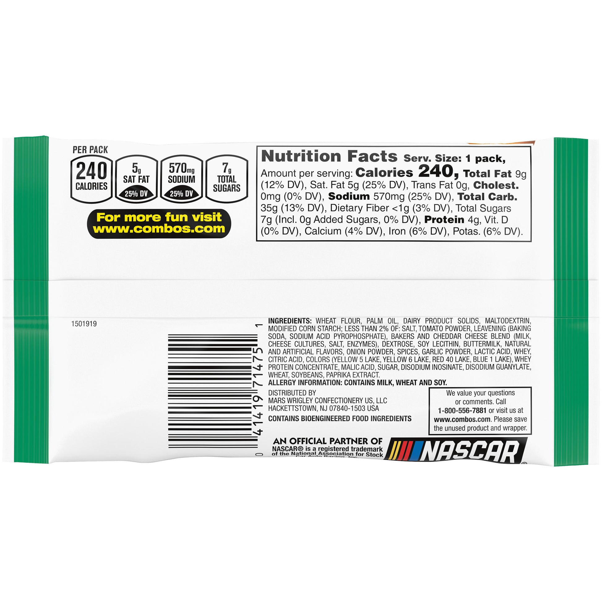 Get ready for one of the best combinations you've ever experienced: Combos Stuffed Snacks, Pizzeria Baked Pretzel Snacks and you. With filling made with real cheese and a crunchy, crispy baked pretzel, these rolled-up bites of heaven with tasty filling are a snack that you will love to eat. With all the flavor of scrumptious pizza in every bite, these individually wrapped, single serving packages will have you jumping for joy. Pack them in your lunch for work or take them along for the ride on your next road trip, and you won't be disappointed when you crunch into some savory, delightful Combos Pizzeria Pretzel Baked Snacks. Contains one (1) 1.8-ounce bag of COMBOS Pizzeria Pretzel Baked Snacks Crunchy oven-baked pretzels stuffed with real cheese and spicy pizza-flavor filling Single-serving bags make it a quick and easy on-the-go snacks The taste of real pizza packed into an awesome and crunchy stuffed pretzel snack Pack a delicious baked snack in your lunch