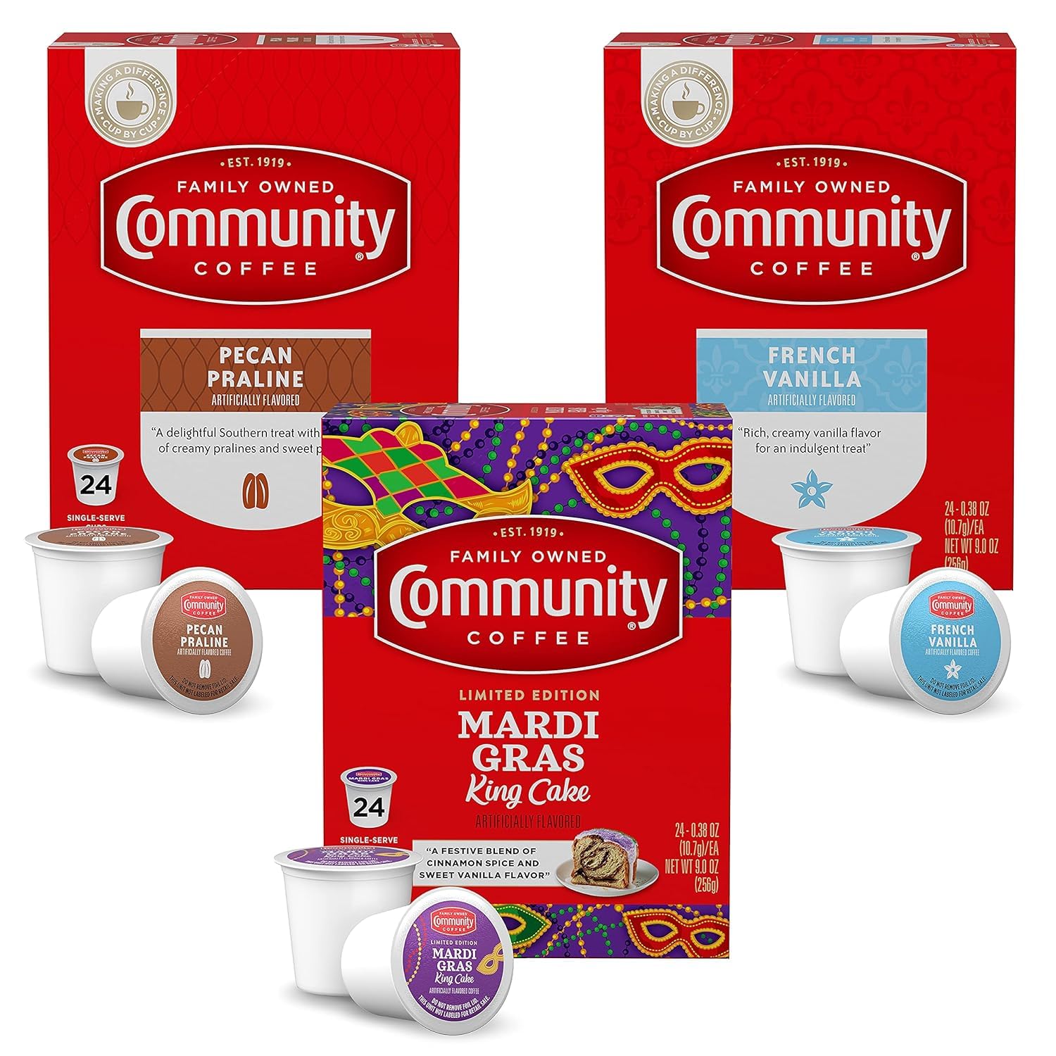 Experience three distinct flavors and find your new favorite with this variety pack. Includes Mardi Gras King Cake, Pecan Praline and French Vanilla flavored coffees. This product contains a 3 pack of 24 single serve coffee pods (Keurig compatible K-Cups). Enjoy 72 cups of coffee. Since Cap blended the first batch of Community® coffee, we’ve seen plenty of change — both inside and outside the company. We’ve evolved to better serve our customers, but we’ve also tried to stay true to our roots and the community that got us started. That’s why for over 100 years we’ve maintained an unwavering dedication to making the best-tasting, highest-quality coffee we possibly can — all while developing better methods of sourcing, superior roasting techniques and innovative ideas to keep our coffee at its peak of flavor and freshness. We simply love making coffee, and we find inspiration in every part of the process, from planting the beans to serving the perfect cup. Above all, we're inspired by the people we work with, the customers we serve and the connections we’ve built together