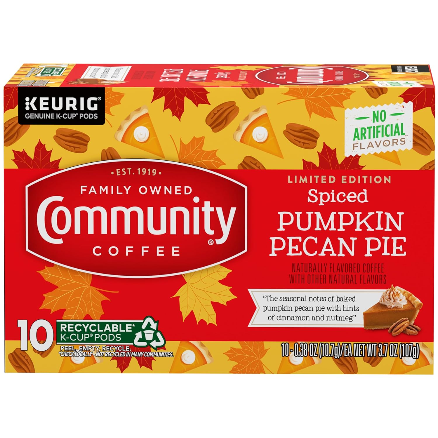 Create an indulgent moment with this limited edition, naturally flavored coffee. With the delightful tastes of pumpkin pie, cinnamon spice and nutmeg, we celebrate the flavors and aromas of fall. This product contains 10 single serve coffee pods (Keurig compatible K-Cups™). Enjoy 10 cups of coffee. About Community Coffee Since Cap blended the first batch of Community® coffee, we’ve seen plenty of change — both inside and outside the company. We’ve evolved to better serve our customers, but we’ve also tried to stay true to our roots and the community that got us started. That’s why for over 100 years we’ve maintained an unwavering dedication to making the best-tasting, highest-quality coffee we possibly can — all while developing better methods of sourcing, superior roasting techniques and innovative ideas to keep our coffee at its peak of flavor and freshness. We simply love making coffee, and we find inspiration in every part of the process, from planting the beans to serving the perfect cup. Above all, we're inspired by the people we work with, the customers we serve and the connections we’ve built together