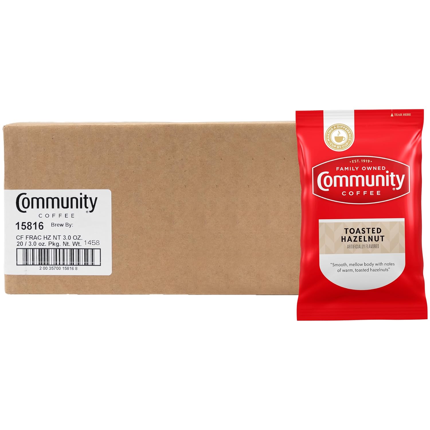 Community Coffee Toasted Hazelnut Flavored, Medium Roast Pre-Measured Coffee Packs, 3.0 Ounce Bag (Box Of 20)