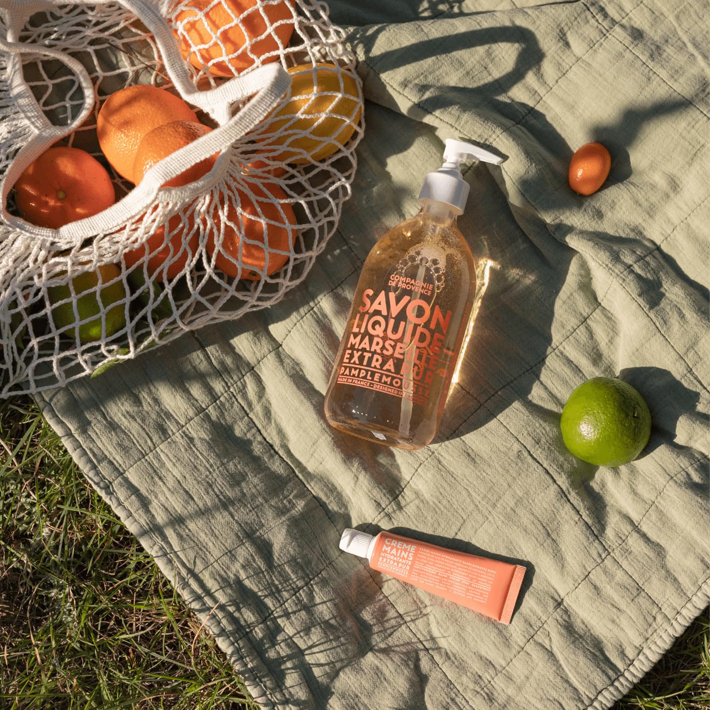 About this item USES ? Natural liquid hand soap, hand wash, and body wash SIZE ? 16.7 Fl Oz glass bottle (pump dispenser); AUTHENTIC ? French Savon de Marseille Extra Pure hand soap PINK GRAPEFRUIT FRAGRANCE ? A bright, zesty and energizing blend of juicy pink grapefruit, tangy citrus, and subtle floral undertones, delivering a refreshing and uplifting aroma perfect for awakening the senses. PREMIUM BLEND ? Soap contains natural Sweet Almond Oil, Olive Oil, and Grape Seed Oil; NATURAL ? Free of coloring agents, animal fats, and paraben EXTRA PURE ? 97% Ingredients of natural origin; REFILLABLE ? Made in France for use in bathroom, shower, bath and kitchen › See more product details,USES ? Natural liquid hand soap, hand wash, and body wash,SIZE ? 16.7 Fl Oz glass bottle (pump dispenser); AUTHENTIC ? French Savon de Marseille Extra Pure hand soap,PINK GRAPEFRUIT FRAGRANCE ? A bright, zesty and energizing blend of juicy pink grapefruit, tangy citrus, and subtle floral undertones, delivering a refreshing and uplifting aroma perfect for awakening the senses,PREMIUM BLEND ? Soap contains natural Sweet Almond Oil, Olive Oil, and Grape Seed Oil; NATURAL ? Free of coloring agents, animal fats, and paraben,EXTRA PURE ? 97% Ingredients of natural origin; REFILLABLE ? Made in France for use in bathroom, shower, bath and kitchen