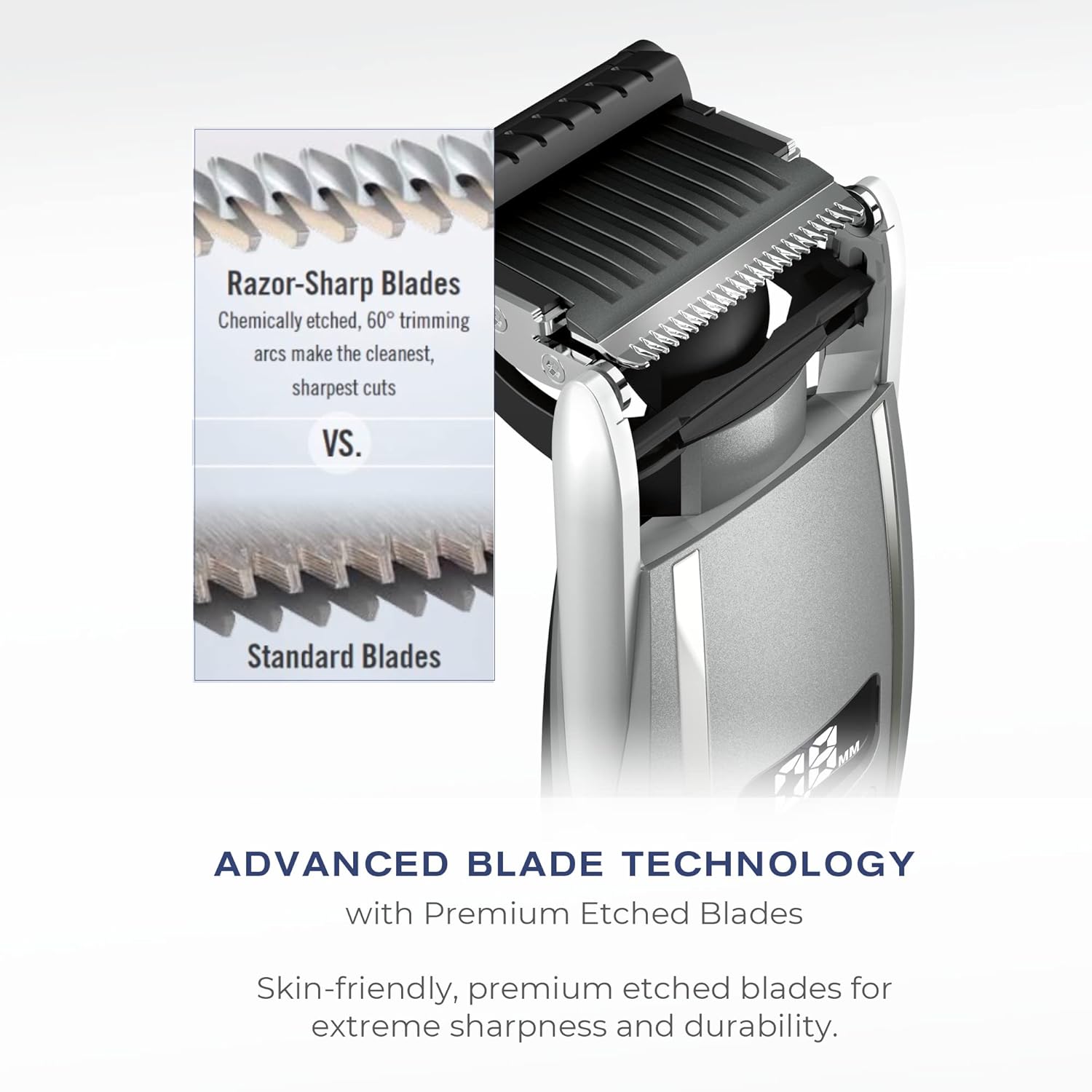 Advanced Blade Technology: Skin-friendly, premium etched blades for extreme sharpness and durability. The ConairMAN Beard and Stubble Trimmer also has as a flip-back guide comb for edging and detailing