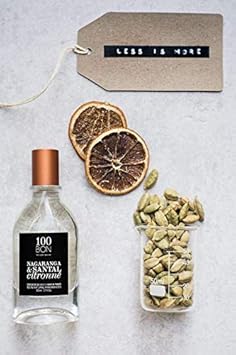 100Bon fragrances are 100% natural gender-neutral fragrances made in Grasse, France, the perfume capitol of the world. Our fragrances are made with alcohol from organic wheat and oils from organic flowers and herbs. The bottles are refillable and the glass and cartons are all recyclable. We are certified organic, vegan, cruelty free. Because there are ZERO artifical ingredients, our fragrances are quite unique and unlike any other fragrance in the marketplace. Nagaranga & Santal Citronne offer a mix of sweet citrus and smoky, woody santal. The concentrate version offers higher concentration of fragrance oils and extracts to offer a deeper, longer lasting scent,Made with all natural ingredients,All 100Bon perfumes are 100% Green and can be refilled again into the same original bottle,Natural, accessible and green are the 3 promises of this innovative brand. Find other 100Bon fragrances sold separately here on