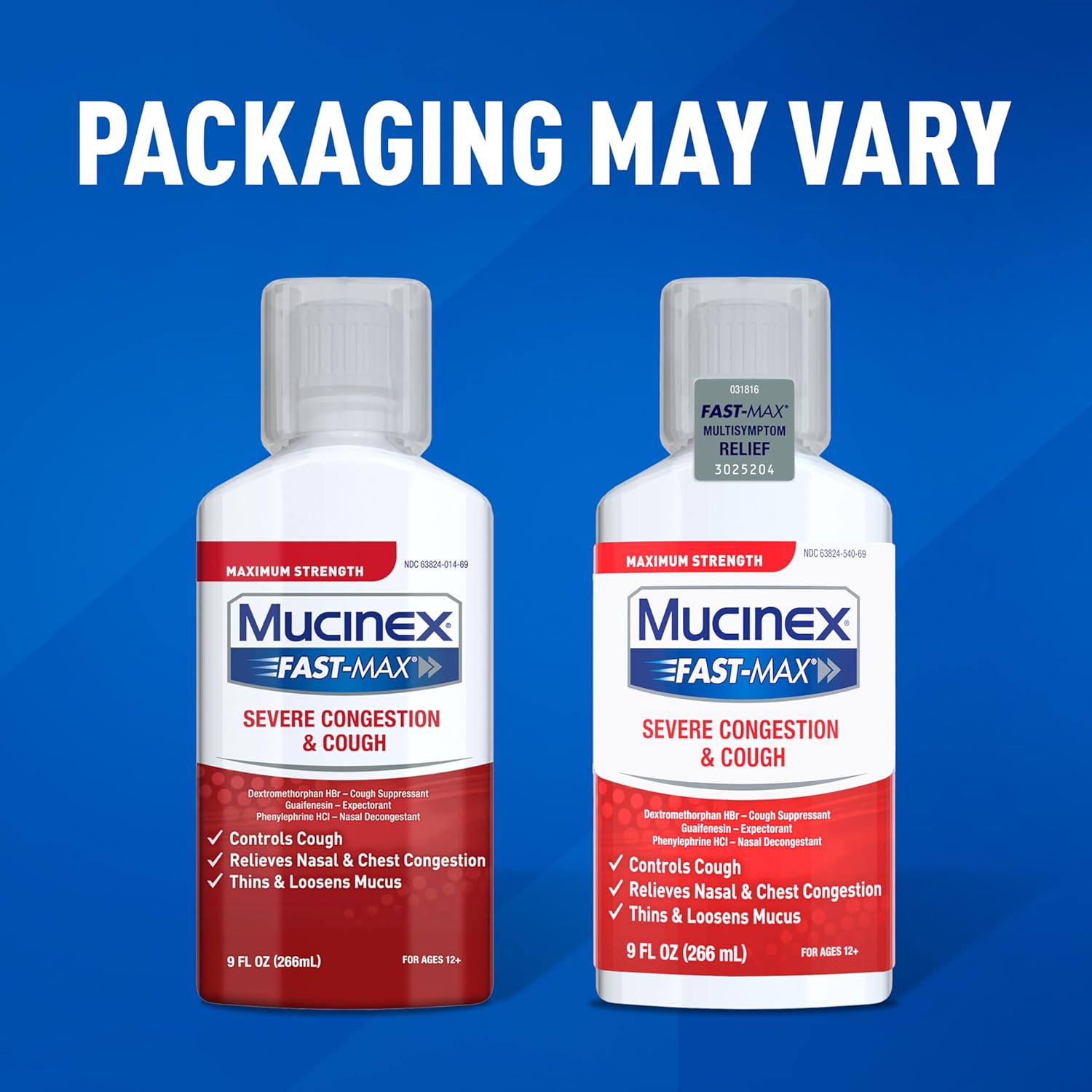 Congestion And Cough Liquid, Mucinex Fast-Max Severe Congestion And Cough Liquid, 9 Fl.Oz, Fast Acting Maximum Strength Formula Relieves Nasal & Chest Congestion, Controls Cough, Thins & Loosens Mucus