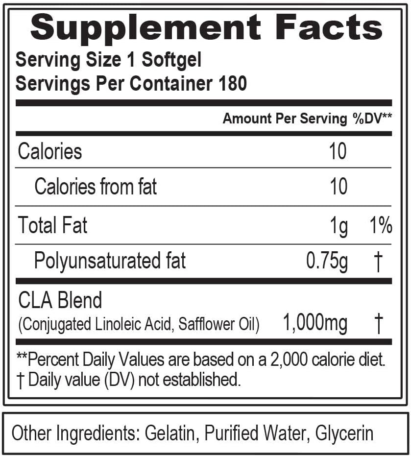 About this item Belly Fat Burner Support - Enjoy our non stimulating CLA supplements made with safflower oil rich in conjugated linoleic acid that may help regulate body fat by increasing your energy expenditure Gentle Weight Loss Support Pills for Men and Women - Help yourself lose weight faster with CLA vitamins that target the precise enzymes and proteins responsible for the fat breakdown process Why Safflower Oil Based - We use this antioxidant rich plant to support your weight management goals thanks to its remarkably high concentration of oleic and linoleic fatty acids including Omega 6 Uncompromising Quality - Combine our non-GMO CLA diet pills for weight loss support with regular diet and exercise and see why this ingredient is so popular among men looking to level up their fitness Join the Evlution - At EVL we are proud to be a leading name in all kinds of workout supplements and weight loss support products because we want to help guys like you look and feel your best every day. See more product details,Belly Fat Burner Support - Enjoy our non stimulating CLA supplements made with safflower oil rich in conjugated linoleic acid that may help regulate body fat by increasing your energy expenditure,Gentle Weight Loss Support Pills for Men and Women - Help yourself lose weight faster with CLA vitamins that target the precise enzymes and proteins responsible for the fat breakdown process,Why Safflower Oil Based - We use this antioxidant rich plant to support your weight management goals thanks to its remarkably high concentration of oleic and linoleic fatty acids including Omega 6,Uncompromising Quality - Combine our non-GMO CLA diet pills for weight loss support with regular diet and exercise and see why this ingredient is so popular among men looking to level up their fitness,Join the Evlution - At EVL we are proud to be a leading name in all kinds of workout supplements and weight loss support products because we want to help guys like you look and feel your best every day