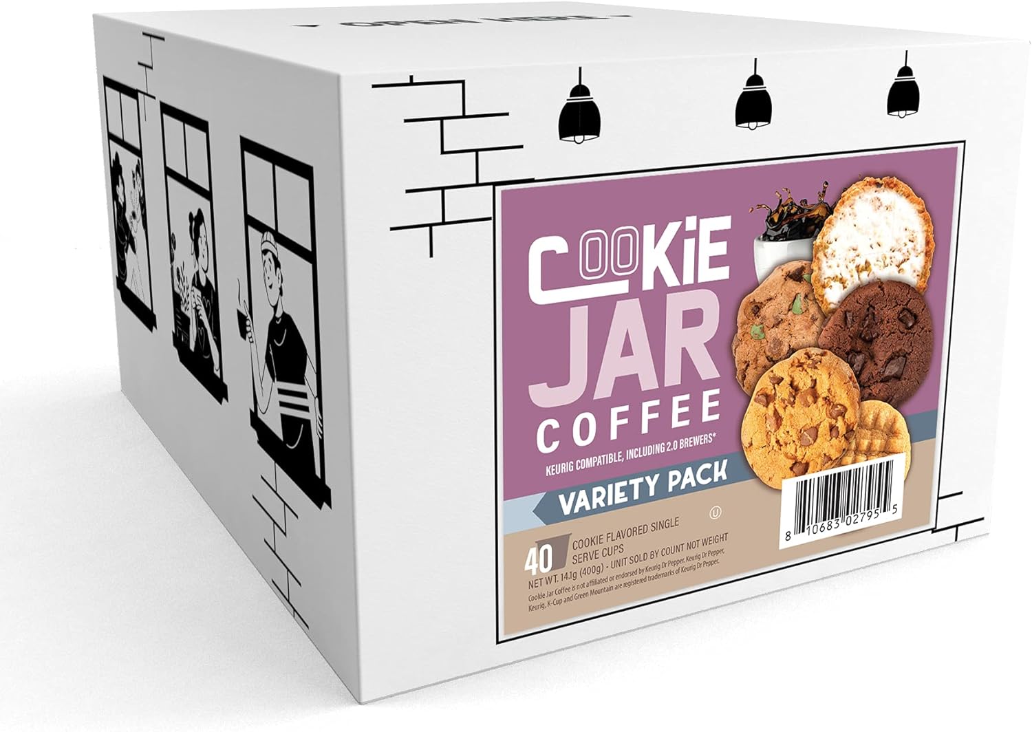 Cookie Jar Assorted Flavored Coffee Pods For Keurig K Cup Brewers, 40 Count Variety Pack β Flavored Coffee Sampler With Multiple Delicious Options