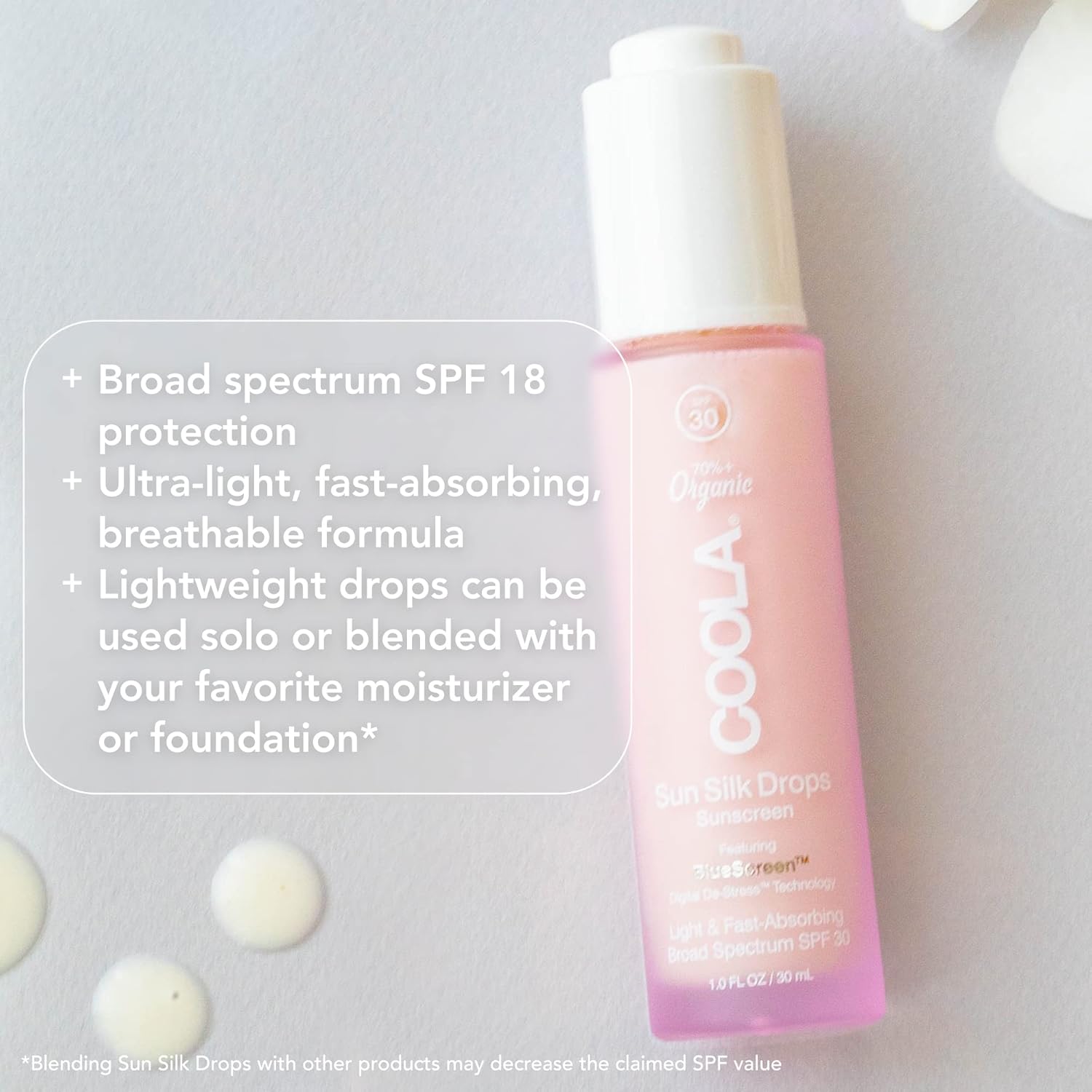 Coola Organic Sun Silk Drops And Face Moisturizer With Spf 30, Dermatologist Tested Sunscreen With Plant-Derived Bluescreen Digital De-Stress Technology, 1 Fl Oz