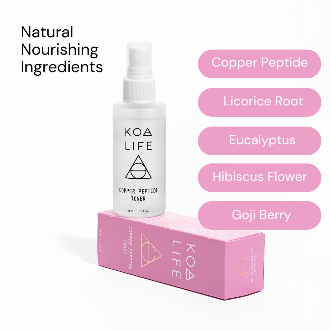 Get that bouncy, glowing skin with our revolutionary Peptide Toner! Our natural, plant-based formula is infused with nourishing Copper Peptides and vitamins to help repair damaged skin, promote collagen production, plump and help reduce the appearance of fine lines and wrikles. Give your skin some TLC it deserves,Collagen Boosting - Copper Pepties and vitamins aim to promote collagen production,Bouncy, Glowing Skin - Our natural plant based formula is designed with the goal of repairing damaged skin,Anti-Aging - Enhance skin elasticity with ingredients that may promote elastin production, smoothing wrinkles and creating a youthful appearance,How to Use - Shake well before use. Close your eyes and apply 1-3 spritzes onto clean face and neck 11-12 inches away from skin. Repeat daily as needed,Key Ingredients: Water, Glycerin, Goji Berry, Hibiscus Sabdariffa Flower, Eucalyptus Leaf Oil, Licorice Root, Copper Tripeptide-1