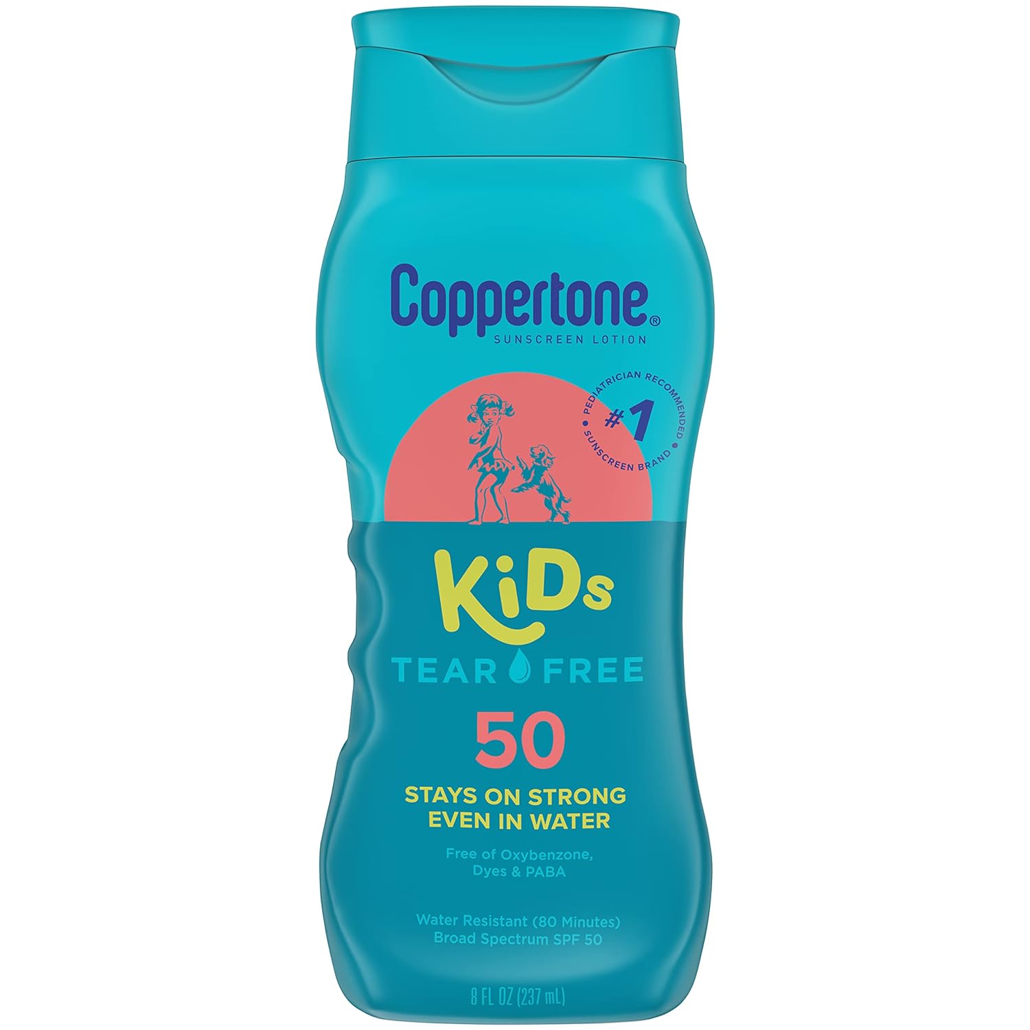 Coppertone Kids Sunscreen Lotion SPF 50, Water Resistant Sunscreen for Kids, #1 Pediatrician Recommended Sunscreen Brand, Tear Free Sunscreen Lotion, 8 Fl Oz Bottle