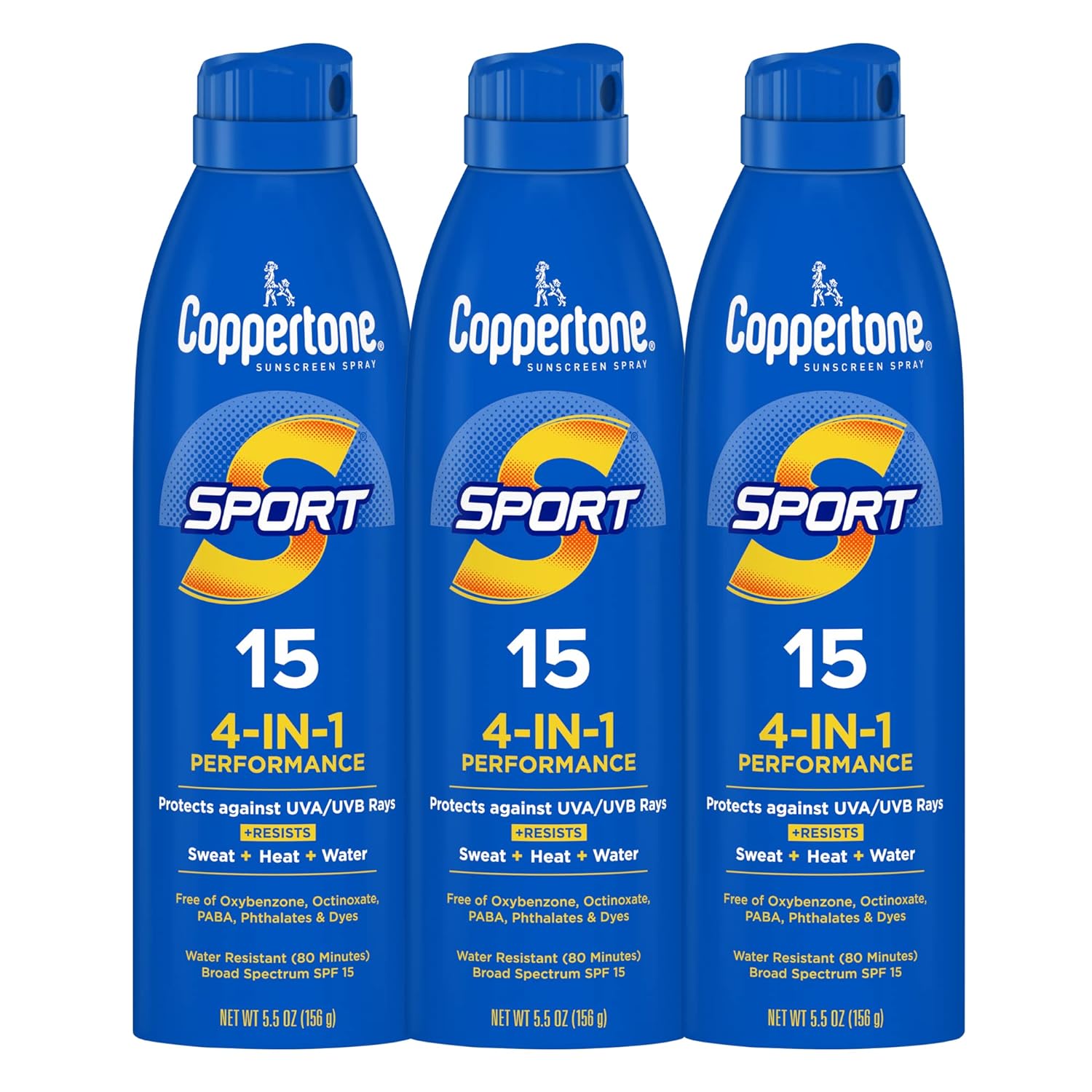Coppertone Sport Sunscreen Spray, Broad Spectrum Spf 15 Water Resistant Spray Sunscreen, 5.5 Oz, Pack Of 3