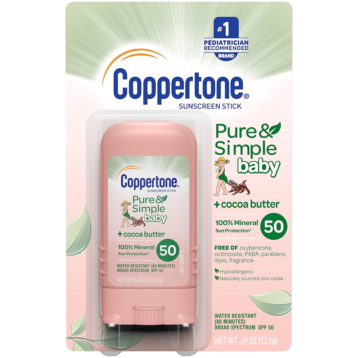 From The #1 Pediatrician Recommended Sunscreen Brand. Protect Your Baby'S Skin From The Sun With Gentle And Hypoallergenic Waterbabies Spf 50 Lotion Spray Sunscreen. For Targeted Protection On Your Baby'S Face And Body, Use The Pure & Simple Baby Mineral Based Sunscreen Stick. Both Sunscreens Are Spf 50, Paba-Free, And Water-Resistant (80 Minutes). These Sunscreens Stop Up To 98% Of The Sun'S Most Damaging Uv Rays, Delivering Broad Spectrum Uva/Uvb Protection. The Coppertone Mineral-Based Sunscreen Stick Contains Zinc Oxide In A Gentle Formula Free Of Paba, Parabens, Phthalates, Dyes, Fragrances, Alcohol, And Oxybenzone. This Multipack Of Sunscreen Offers A Great Value And Maximum Savings For Family Outings, Playdates, Preschools, And More. It Includes Two 6-Fluid Ounce Bottles Of Spf 50 Sunscreen Lotion Spray, And One 0.5-Ounce Stick Of Spf 50 Sunscreen. Use And Reapply As Directed