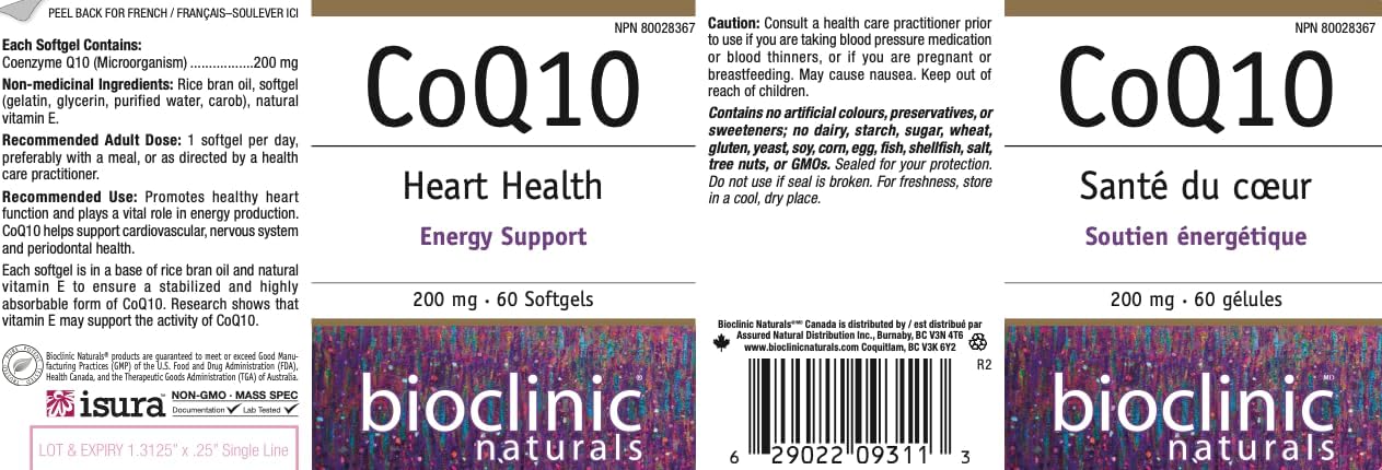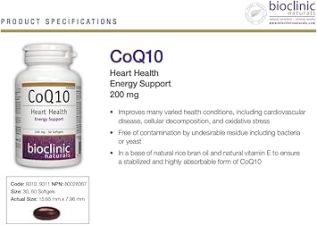 Bioclinic Naturals CoQ10 200 mg comes with 60 softgels per bottle