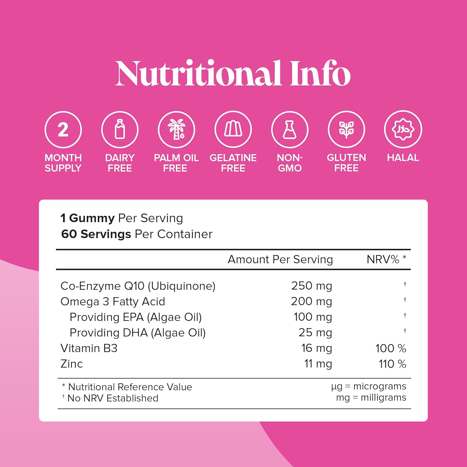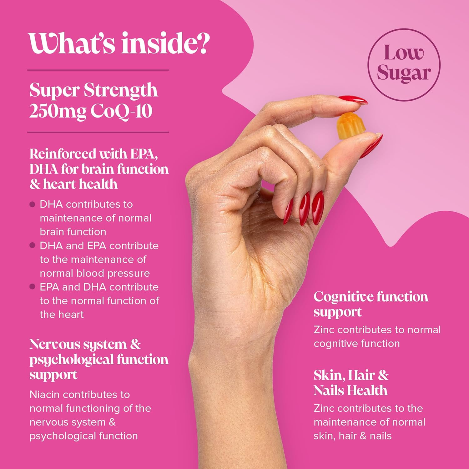 Coq10 Gummies – 250Mg High Strength Coq10 Supplement – 60 Gummies – Coenzyme Q10 With Epa, Dha, Vitamin B3 & Zinc - Co Enzyme Cq10 Naturally Fermented High Absorption Cq10 Supplement - Novomins
