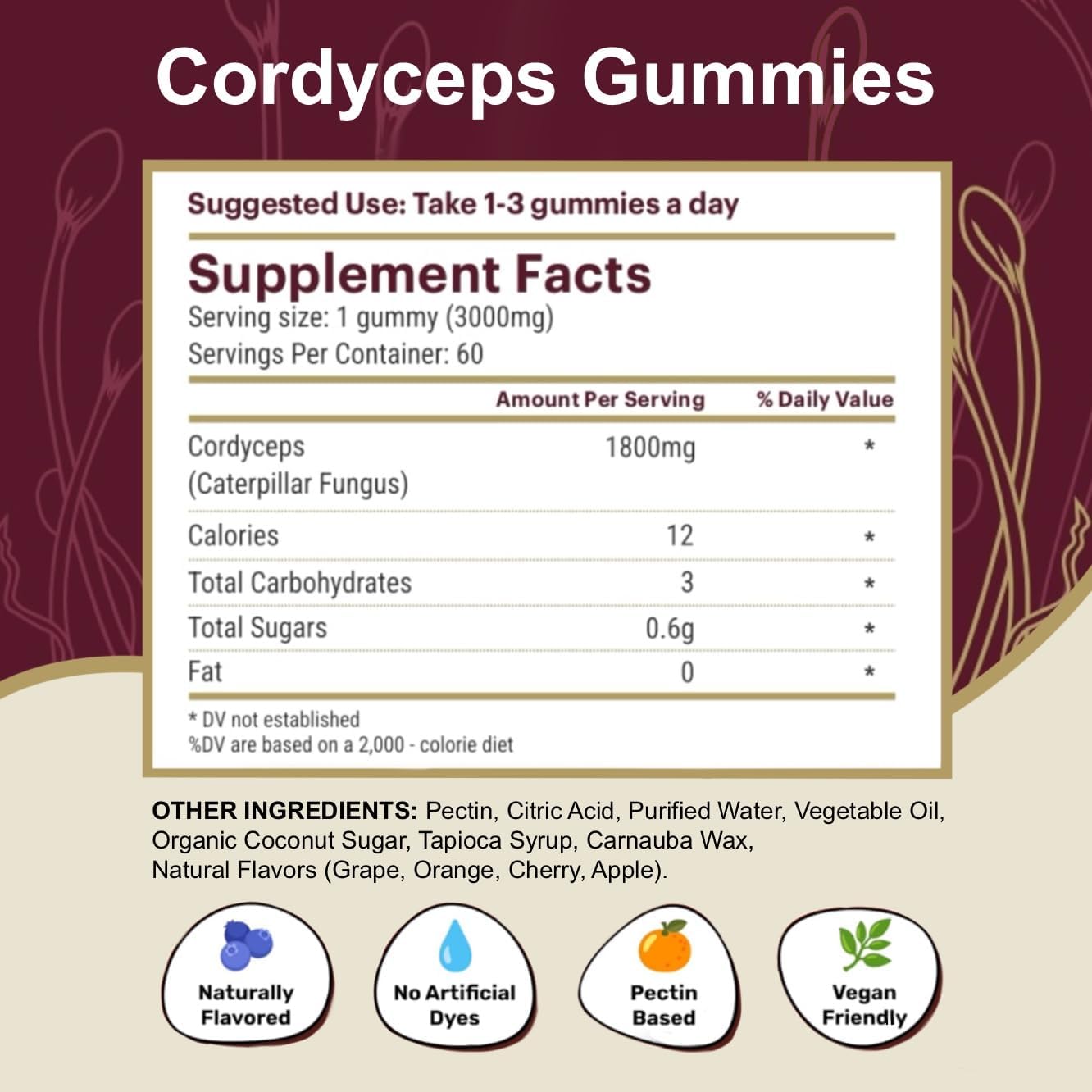 ENERGIZING GUMMY SUPPLEMENT: Experience the power of adaptogenic mushrooms with our Cordyceps Mushroom Gummies, providing a tasty and convenient way to support energy levels and cognitive function