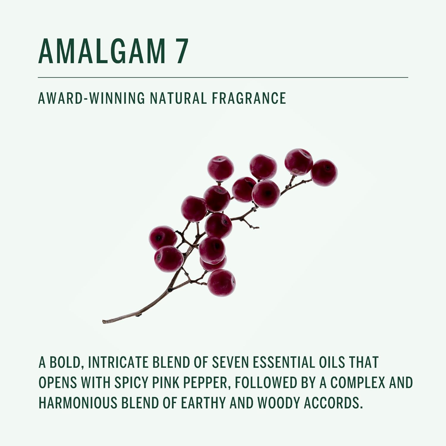 SCENT: Amalgam 7 is a Bold, Intricate Fragrance of 7 Essential Oils - Pink Peppercorn, Cedar, Bergamot, Coriander, Black Pepper, Patchouli, Fennel - to Create a Truly Unique and Harmonious Aromatic Profile