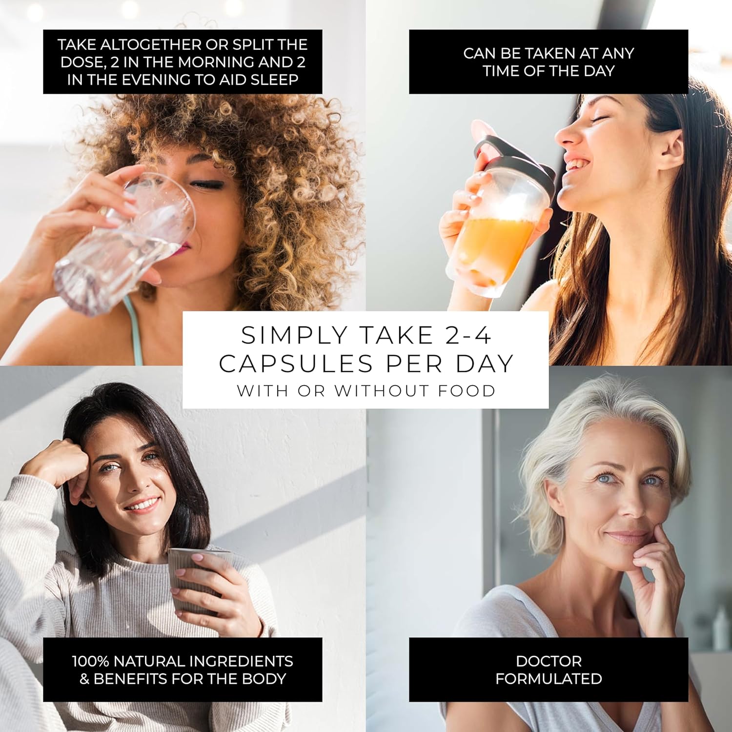 ADDED HYALURONIC ACID, VITAMINS & MINERALS: Each capsule has been enhanced with a high dose of hyaluronic acid, vitamin C and the minerals zinc, manganese and selenium, all of which work in harmony with collagen. Our marine collagen is super easy to take and incorporate into your everyday life. We recommend simply taking four capsules per day, with or without food - two in the morning and two in the evening