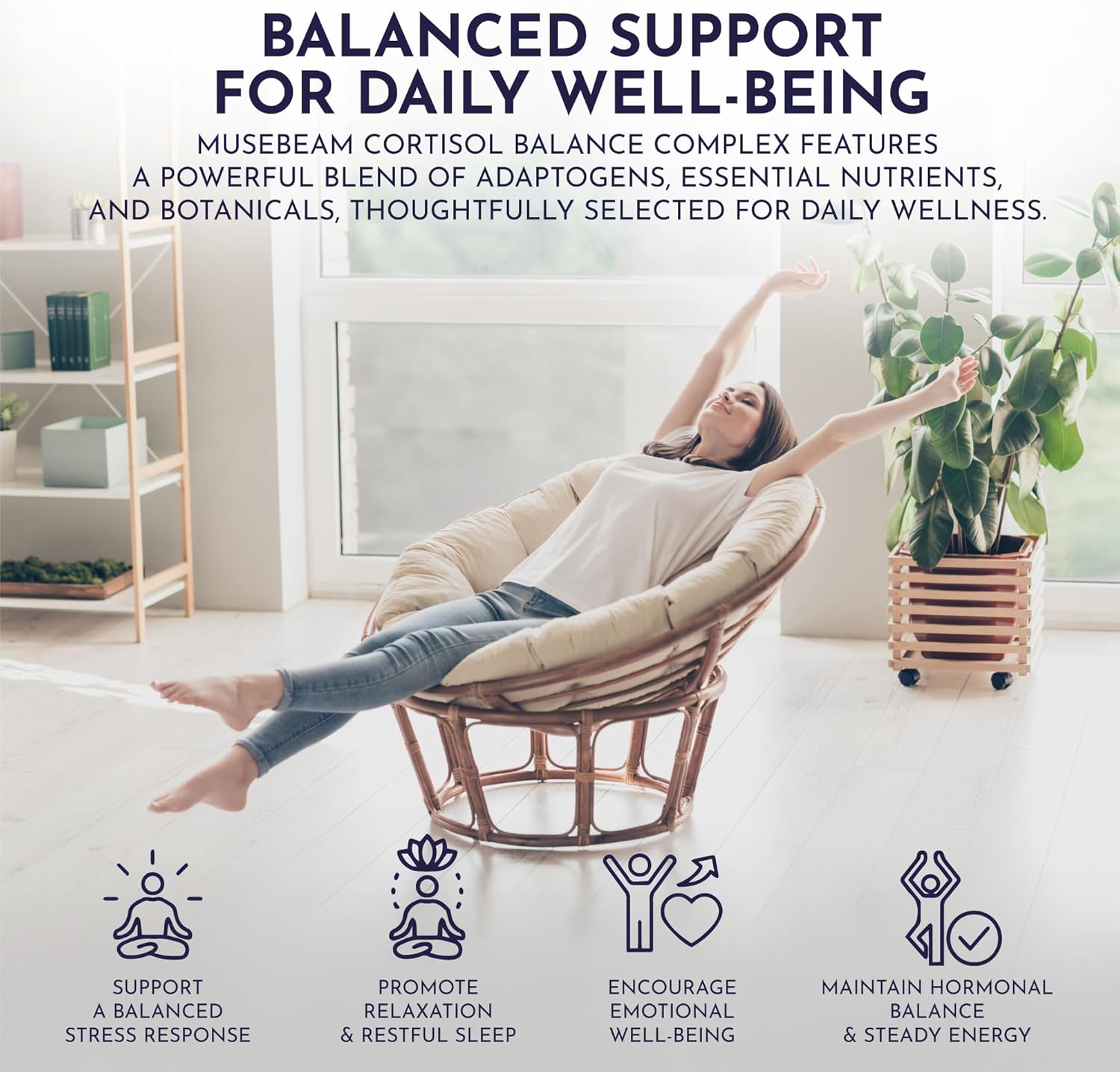 Natural Support for a Balanced Mood: MuseBeam Cortisol Detox Capsule is a cortisol lowering supplement for women and men, combining Valerian Root, GABA, Magnolia Bark, and adaptogens like Ashwagandha, Rhodiola, and Holy Basil to help promote relaxation and overall well-being. It supports the body’s natural cleanse and detox process while maintaining balance. By encouraging a calm and steady mindset, it aids in cortisol control, helping promote a more resilient and composed outlook every day