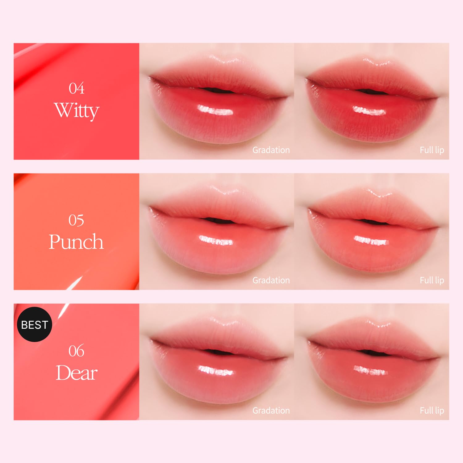 High Shine Finish: Perfect Combination Ratio Of 28% Moisture Essence & Oil! Non-Sticky Lip Tint Provides A Light, Moist And Comfortable Touch