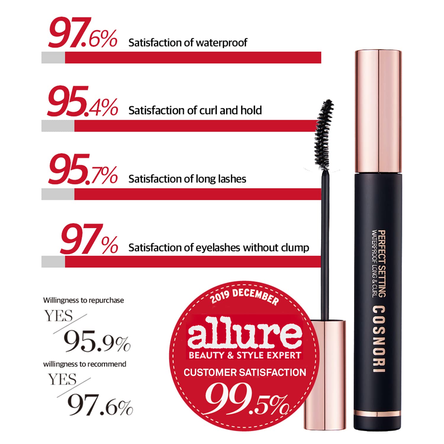 Cosnori Perfect Setting Waterproof Mascara Long & Curl - Lengthening Fiber Mascara Black – Natural Lash Extension – Waterproof, Smudge Proof, Clump Free – Irritation Free Tested, 0.24 Fl.Oz