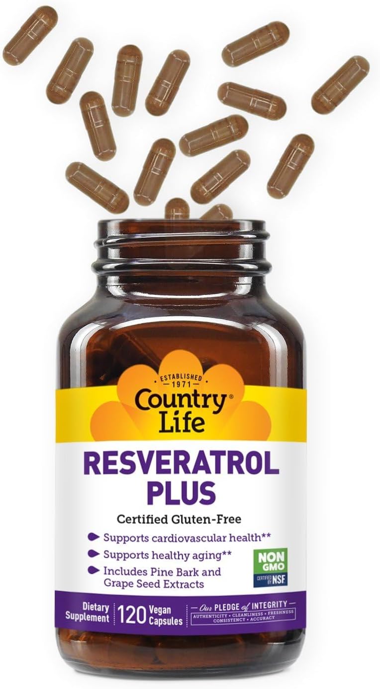 Country Life Resveratrol Plus 1000Mg - Organic Antioxidant Supplement With Pine Bark & Grape Seed Extracts - Vegan, Gluten-Free, Non-Gmo