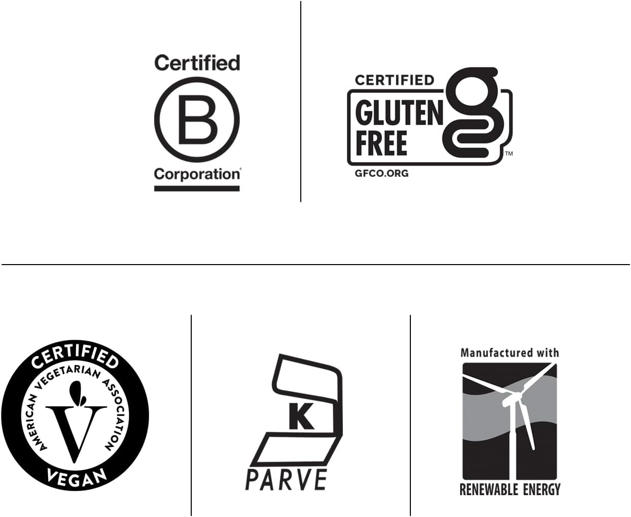 Responsibly made - Certified Glute Free, Vegan, Halal, Kosher made with recyclable packaging the manufacturing of this product supports wind power. This product does not contain yeast, corn, wheat, soy, milk, preservatives or artificial colors, flavors or sweeteners