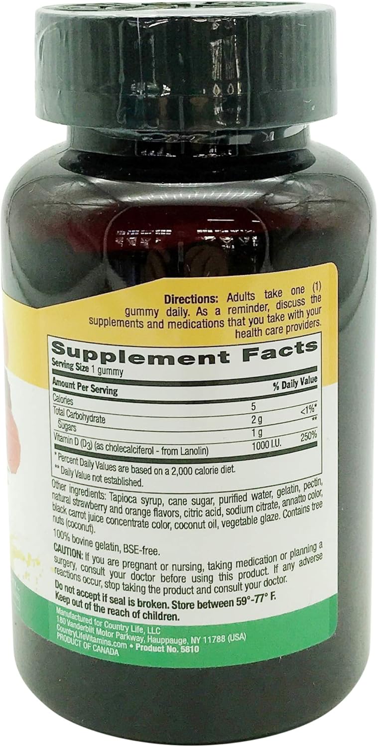 Country Life Strawberry & Orange D3 Gummies, 60 Ct