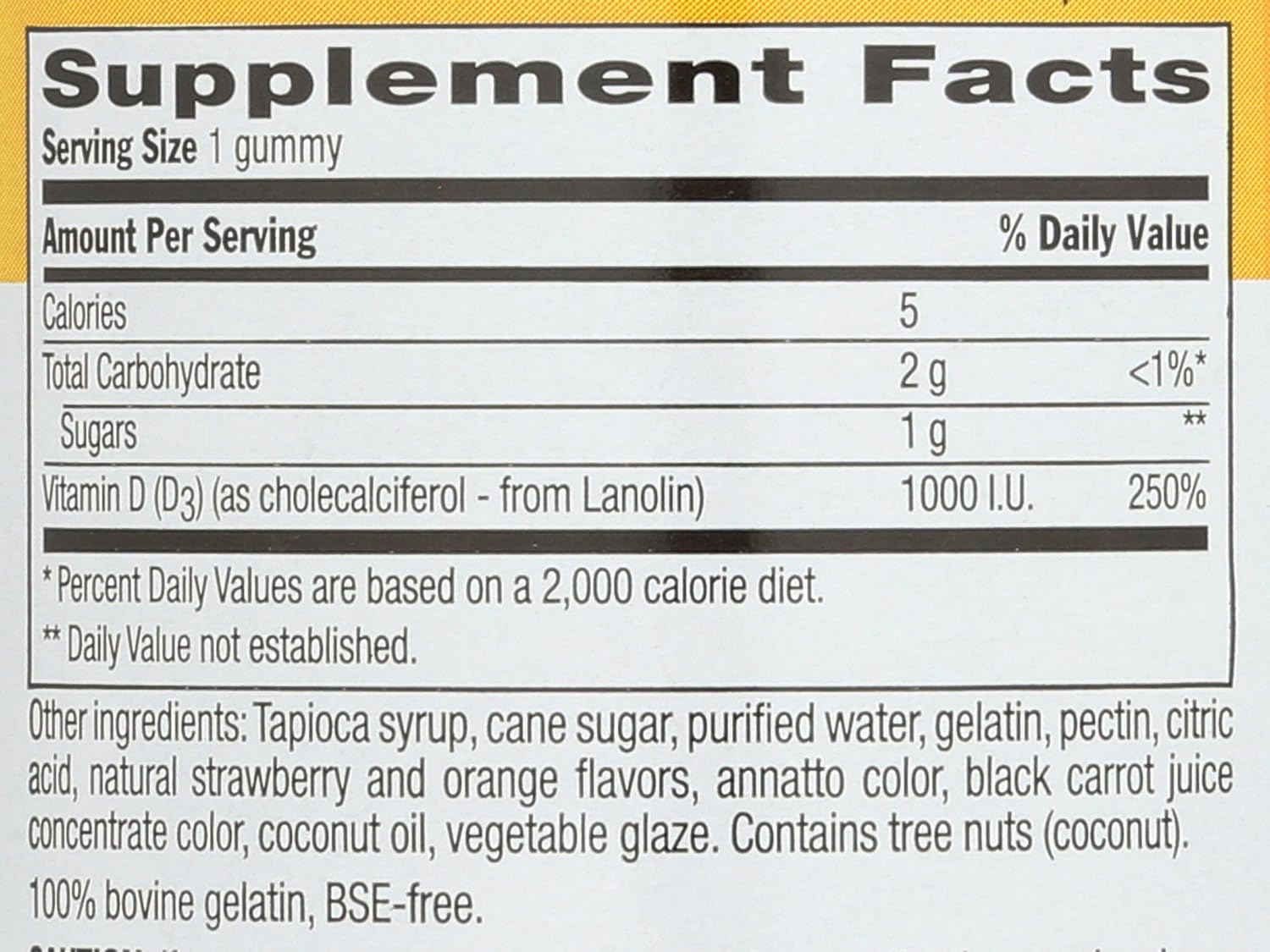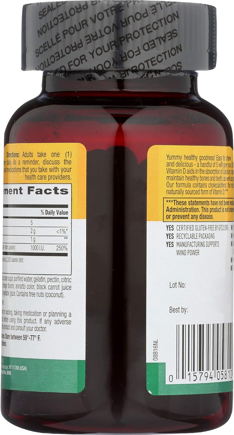 Yummy Healthy Goodness! Easy To Chew And Delicious. A Handful Of 5 Will Give You 5, 000 I.U. Vitamin D Aids In The Absorption Of Calcium, Helping To Form And Maintain Healthy Bones And Teeth, As Well As Promote Immune Health. Our Formula Contains Cholecalciferol, The Most Easily Abosrbed And Utilized Naturally Sourced Form Of Vitamin D