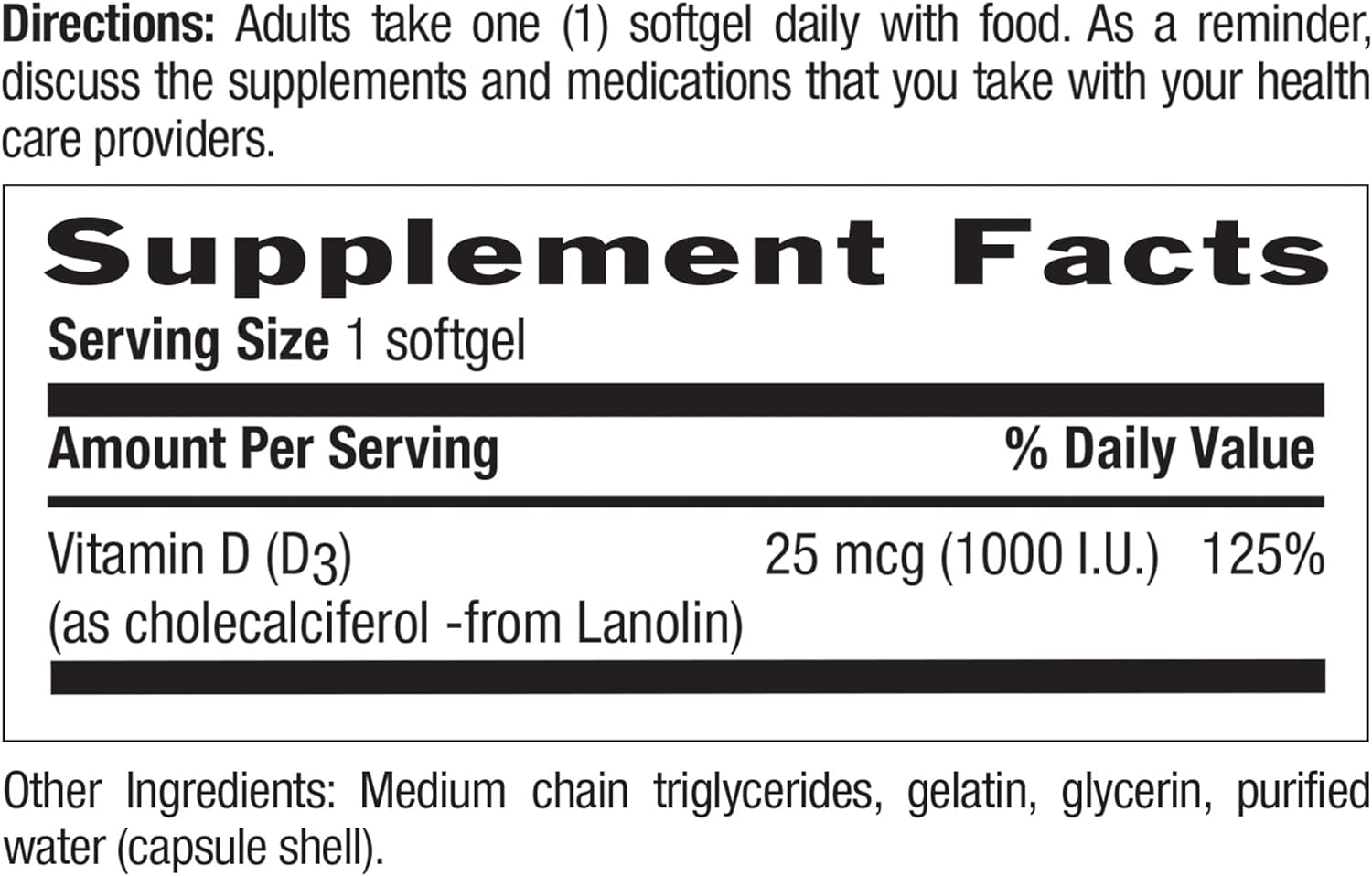 DESCRIPTION : Country Life Vitamin D3, Non-Fish 1000 IU, 200 Softgels, Certified Gluten Free