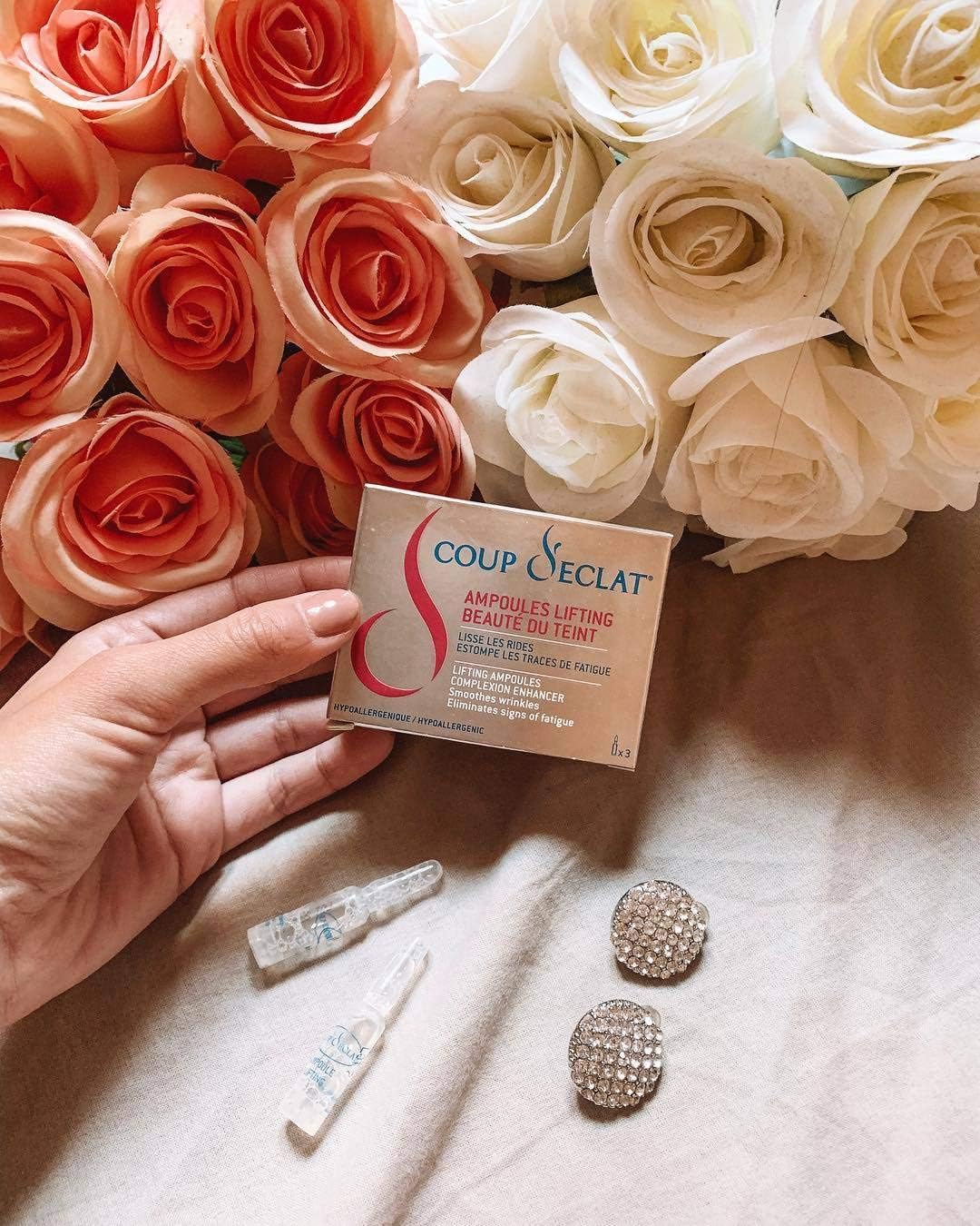 Instant Lifting Ampoules are safe for all skin types and contain a serum that is applied to cleansed skin to give an instant face lift lasting 8 hours