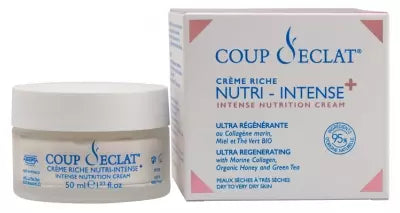 Coup D'Éclat Intense Nutrition Cream+ 50Ml Is A Cream That Intensely And Durably Moisturizes And Nourishes Dry To Very Dry Skin, Even Sensitive Skin. Its Formula Combines : Marine Collagen And Organic Silicon For Intense Hydration. Avocado Oil And Shea Butter With Exceptional Softening And Regenerating Properties. The Extracts Of Honey And Green Tea Bio With The Action Anti-Radicalaire. Its Unctuous And Enveloping Texture Penetrates Quickly Without Sticky Effect. More Comfortable, The Skin Finds Suppleness, Softness And Radiance. Tested Under Dermatological Control. 95% Of The Ingredients Are Of Natural Origin