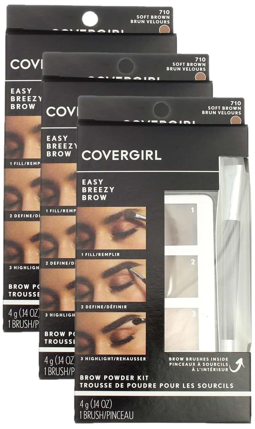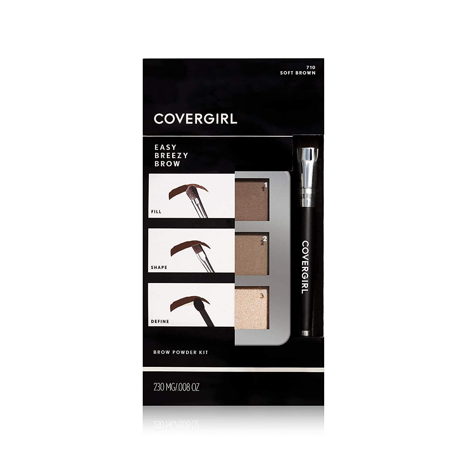 Covergirl - Easy Breezy Brow Powder Kit, Three Shades Brow Definer, Professional Double-Ended Angled Brush, Effortless, 100% Cruelty-Free
