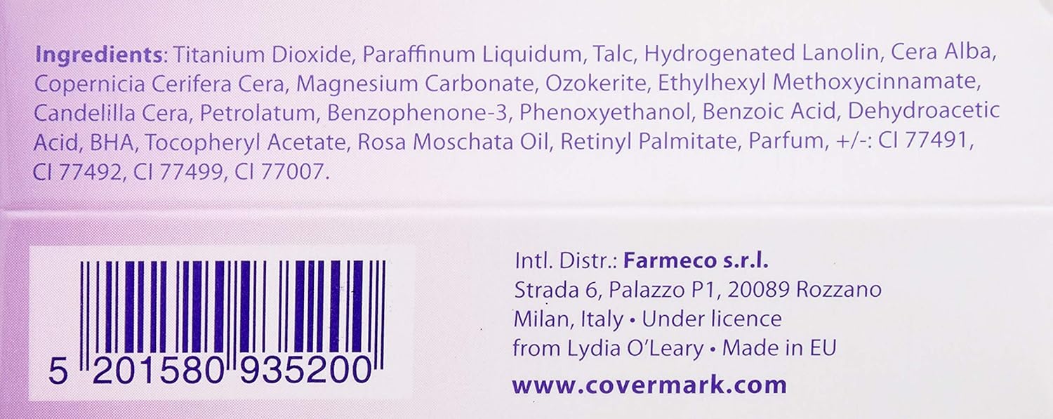 Product Description Covermark’s excellent concealer flawlessly covers dark circles and fine lines for a bright, radiant and more youthful complexion. With an SPF30 for high protection against UVA and UVB rays. Clinically tested. Hypoallergenic. Note: Date mentioned on the item is Manufactured date and not the Expiry date Directions For use, we recommend applying the concealer specifically to the desired areas and then blending for an even result. P.when('A').execute(function(A) { A.on('a:expander:toggle_description:toggle:collapse', function(data) { window.scroll(0, data.expander.$expander[0].offsetTop-100); }); }); Box Contains 1 x 6g Covermark Concealer - Shade 6 See more,Provides lasting 24 hour natural looking coverage,Suitable for all skin types. Easy to apply and allows skin to breathe,Active Ingredients: Vitamins A & E, Rosa Moscata Oil and Beeswax,100% waterproof,Anti-ageing and helps fight free radicals for a more youthful appearance