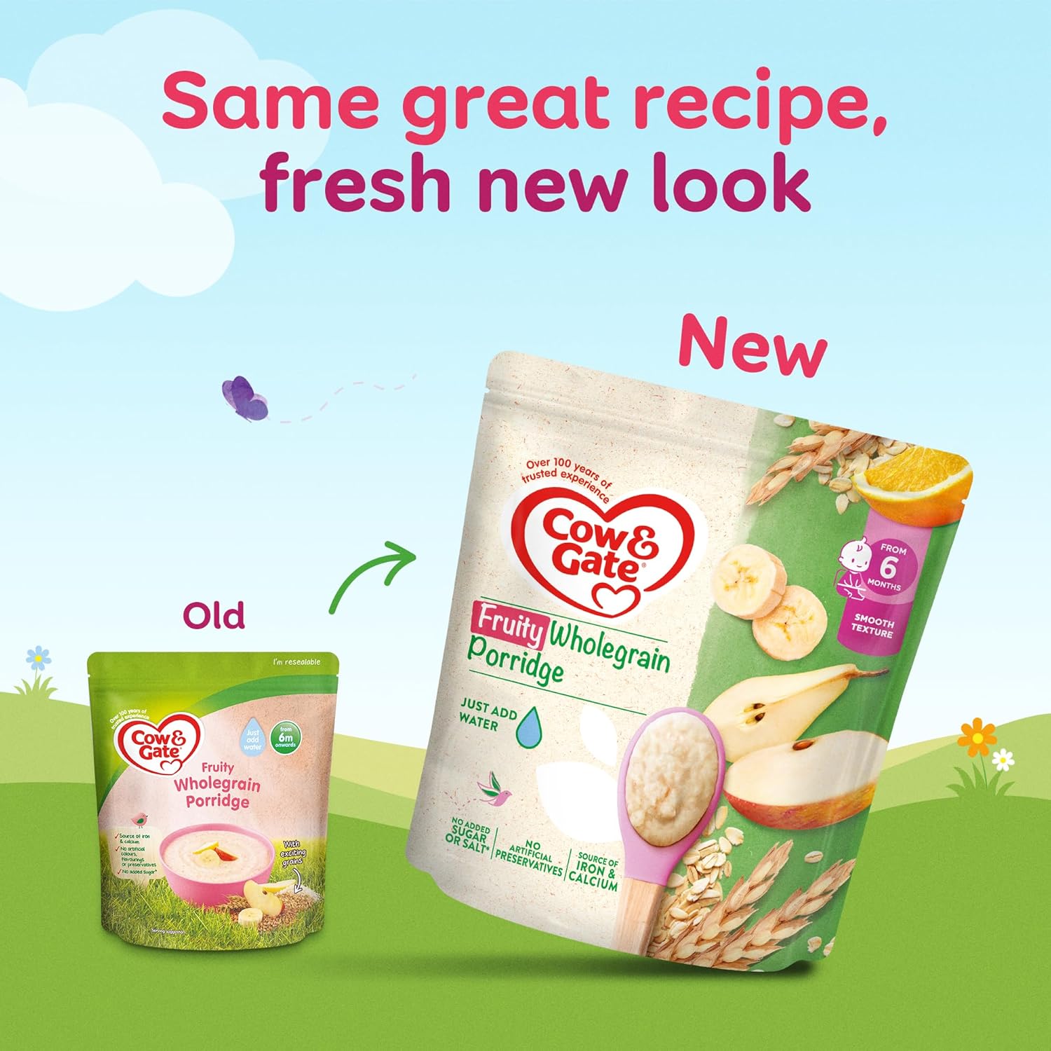 Cow & Gate Fruity Wholegrain Porridge Baby Food Cereal, 6+ Months, 125G (Pack Of 5)